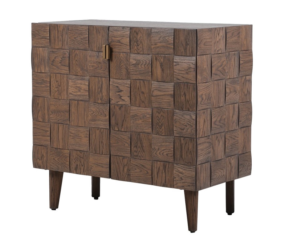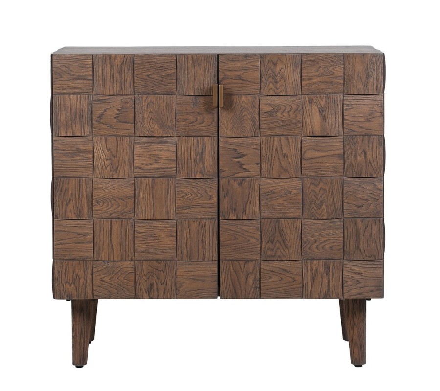 Luxusný retro dvojdverový príborník Lokan z masívneho dubového dreva v hnedej farbe s 3D šachovnicovým reliéfom 90 cm