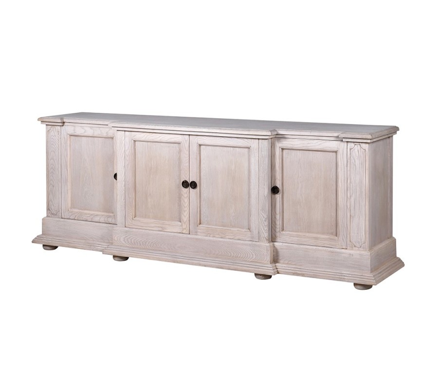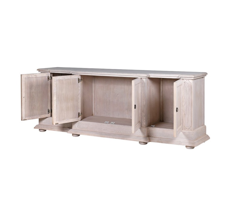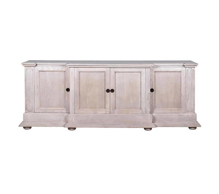 Luxusný vidiecky masívny béžový štvordverový príborník Nature z dubového dreva s vyrezávanými detailmi 220 cm