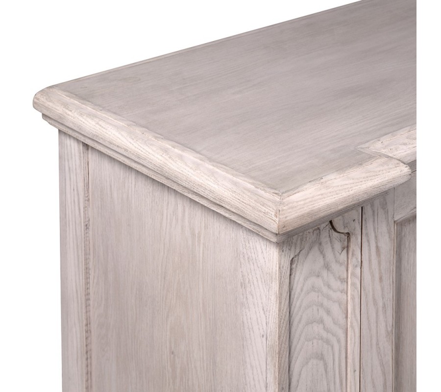 Príborník Nature predstavuje exkluzívny kus nábytku, ktorý v sebe spája robustnosť masívu a precízne remeselné spracovanie. Vyrobený je z dubového dreva, ktoré je známe svojou vysokou odolnosťou a dlhou životnosťou. Povrch má jemný béžový odtieň s bielou patinou, pričom krásne vyniká výrazná kresba letokruhov a prírodná štruktúra dubu.