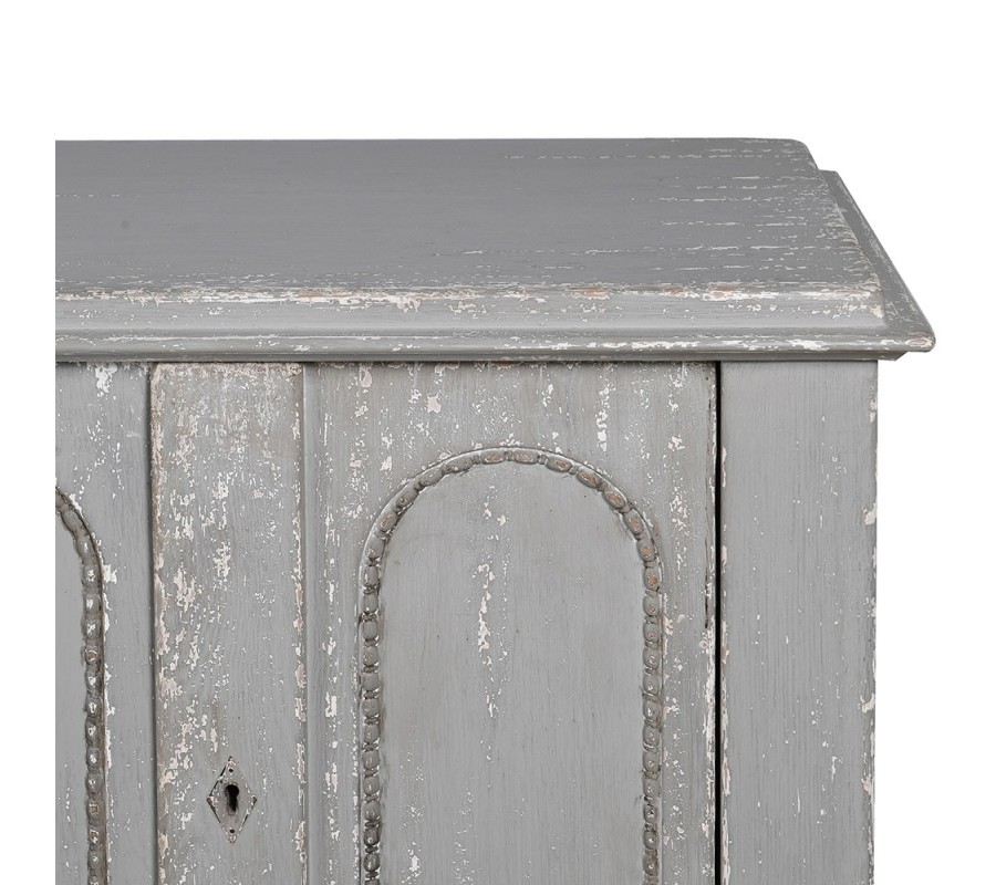 Luxusný vintage príborník Fogley so šiestimi dvierkami s oblúkovým zdobením z svetlej sivej farbe so zostarnutým efektom 216 cm