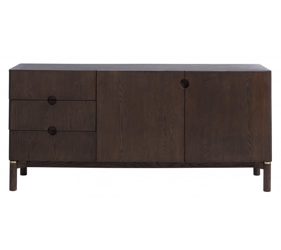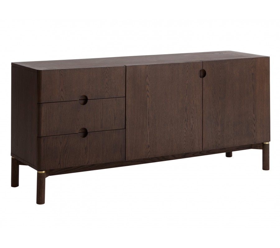 Moderný art deco dvojdverový príborník Linia s tromi zásuvkami s okrúhlymi úchytkami v tmavom hnedom dubovom prevedení 160 cm