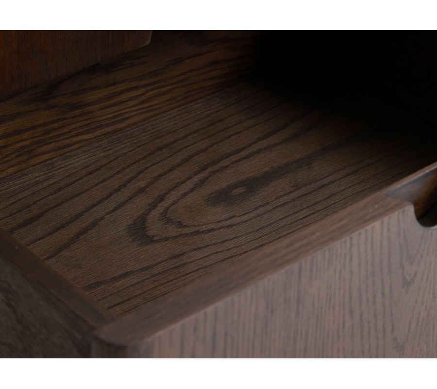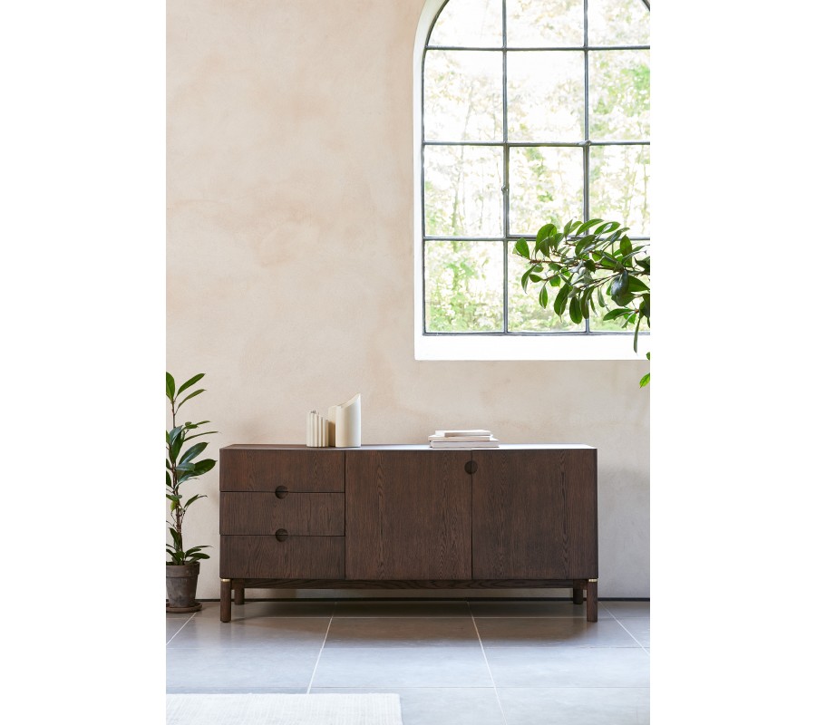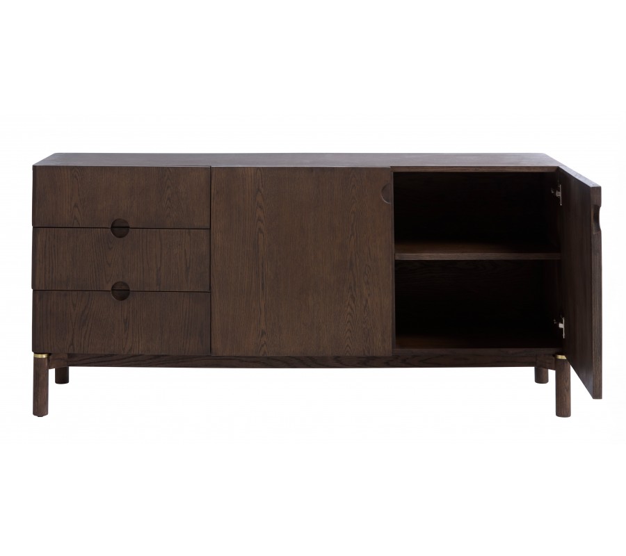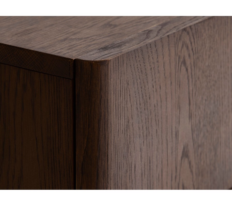 Príborník Linia vás očarí svojím moderným minimalistickým dizajnom s nádychom art deco štýlu. Tmavé dubové prevedenie pôsobí elegantne a zároveň prinesie do priestoru pocit tepla.