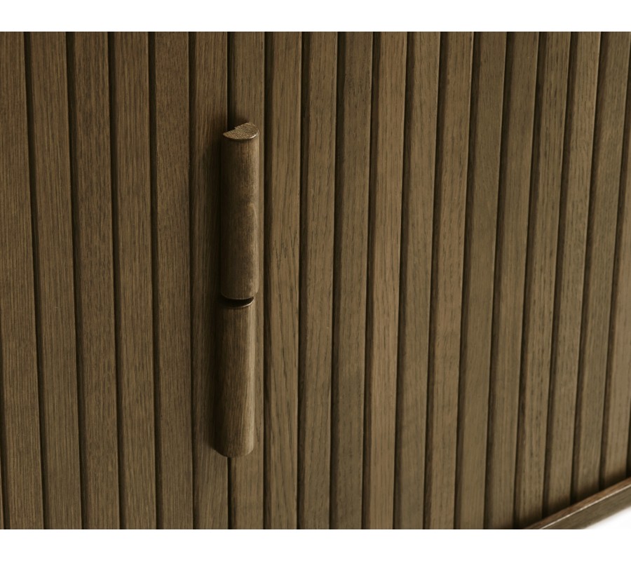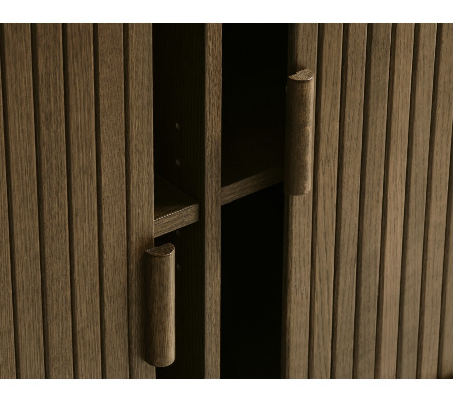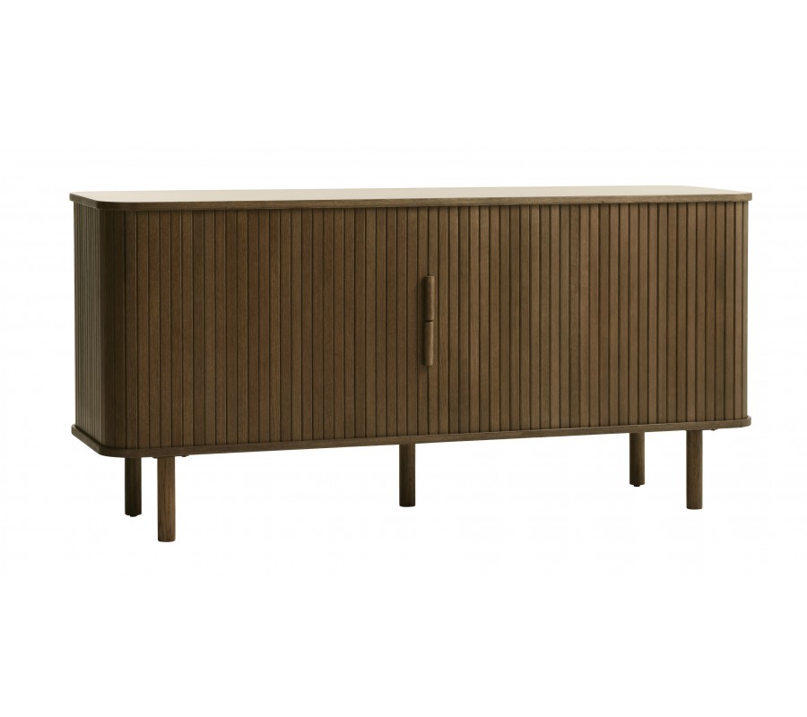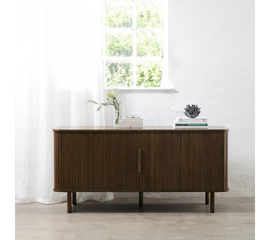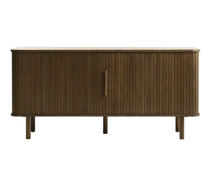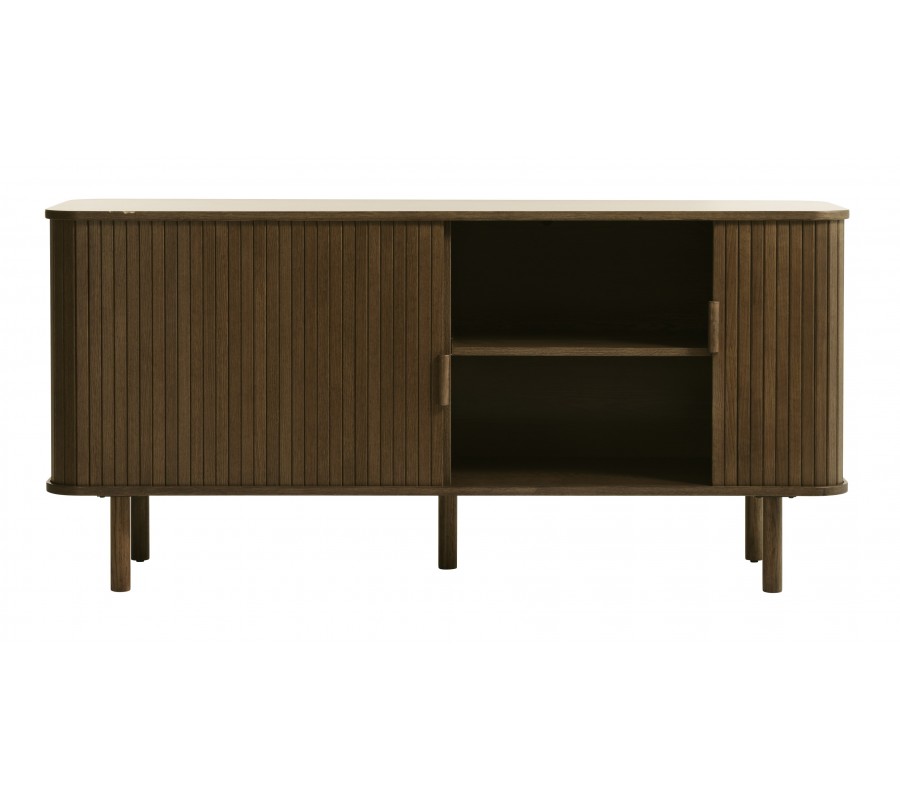 Škandinávsky dvojdverový príborník Elbe s posuvným lamelovým dizajnom v tmavom hnedom dubovom prevedení 160 cm