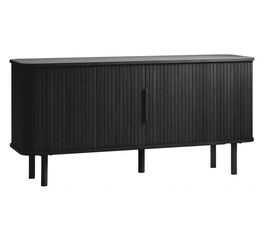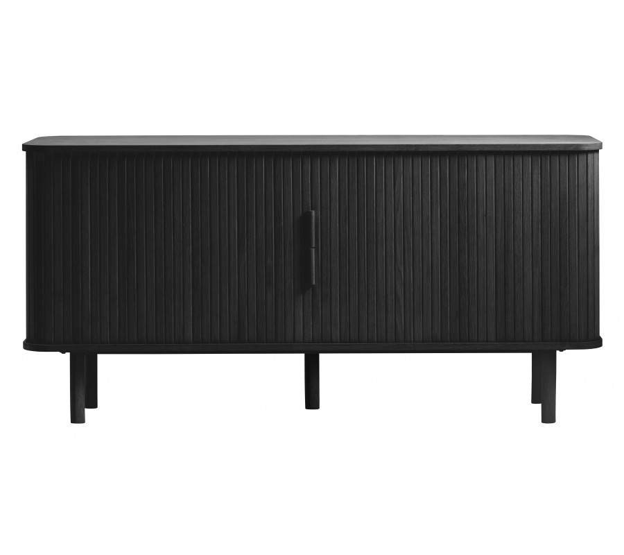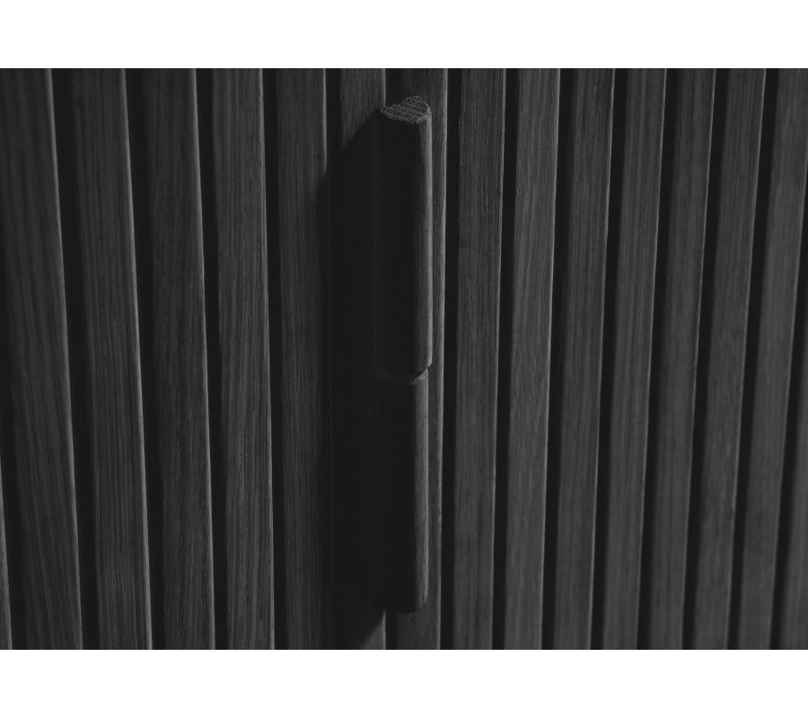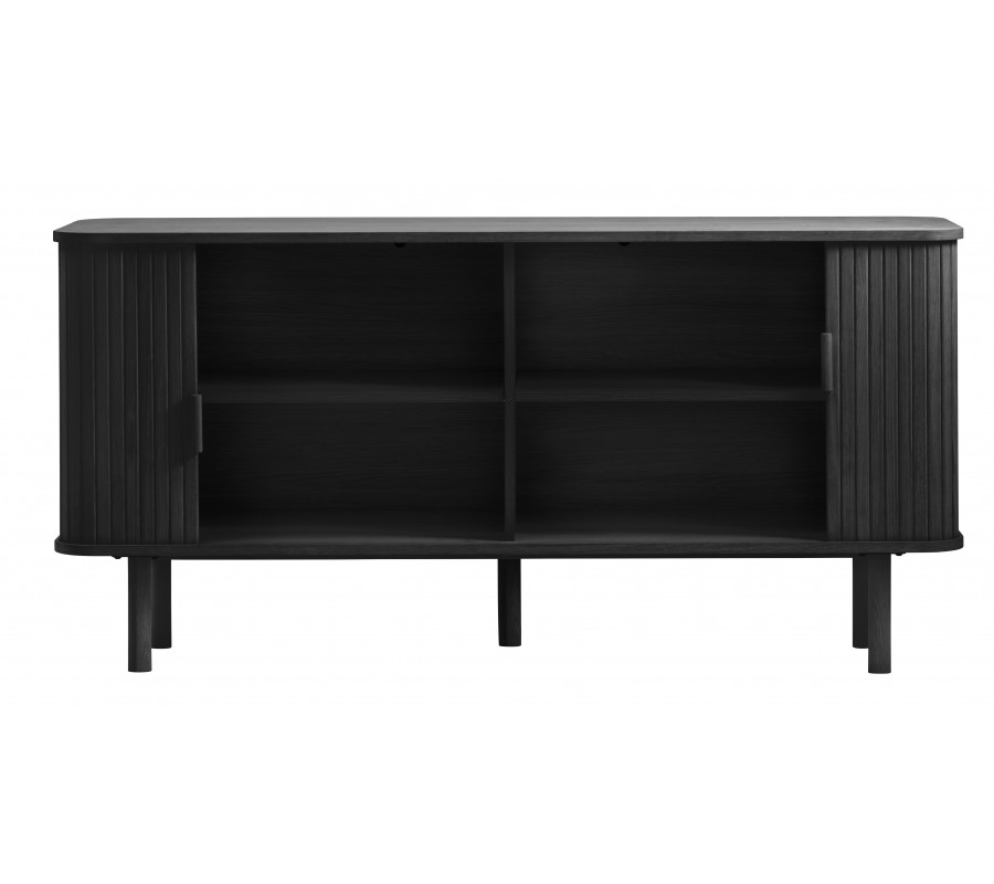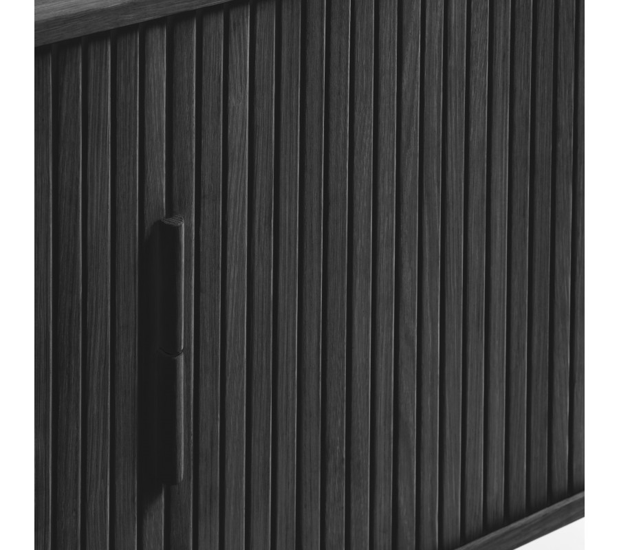 Dizajnový retro príborník Elbe v čiernom dubovom prevedení s dvojitými lamelovými posuvnými dvierkami 160 cm