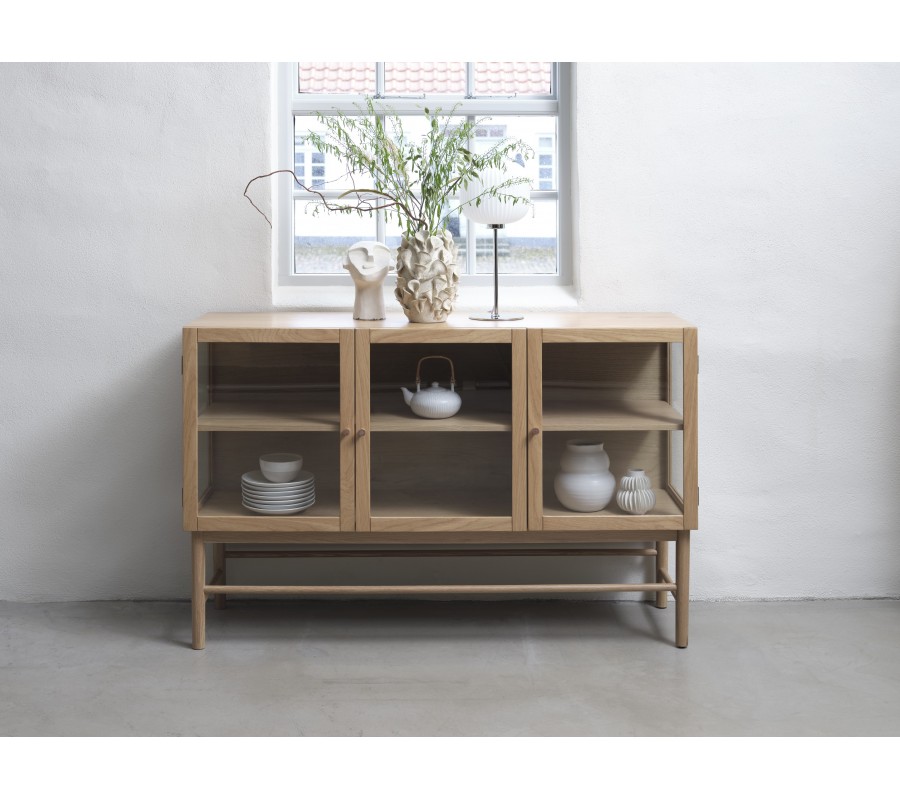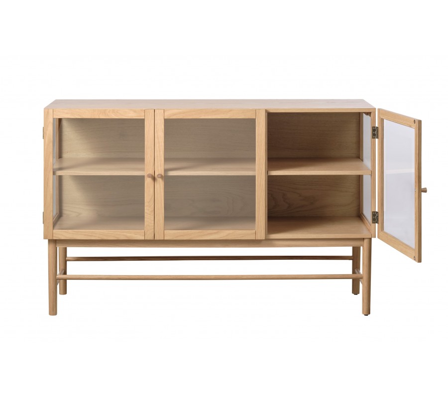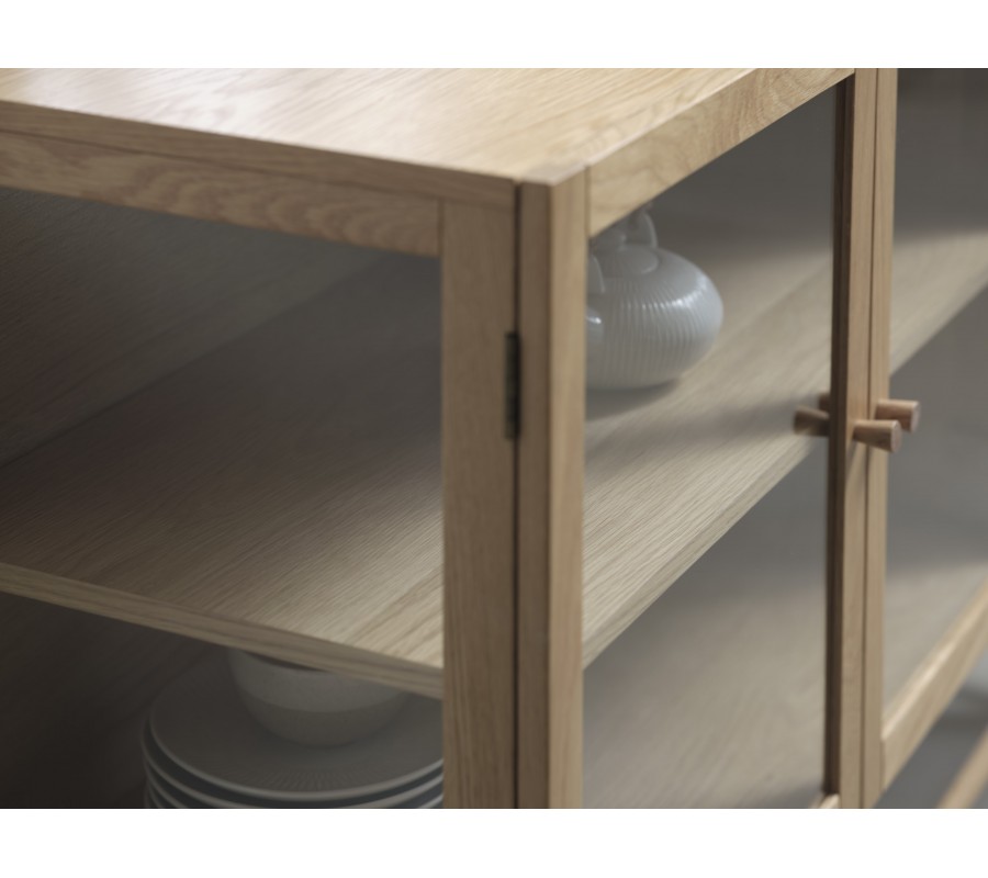 Príborník Viggo vás zaujme svojím unikátnym preskleným dizajnom a minimalistickým škandinávskym vizuálom. Dubové drevo prinesie do priestoru pocit tepla a útulnosti.