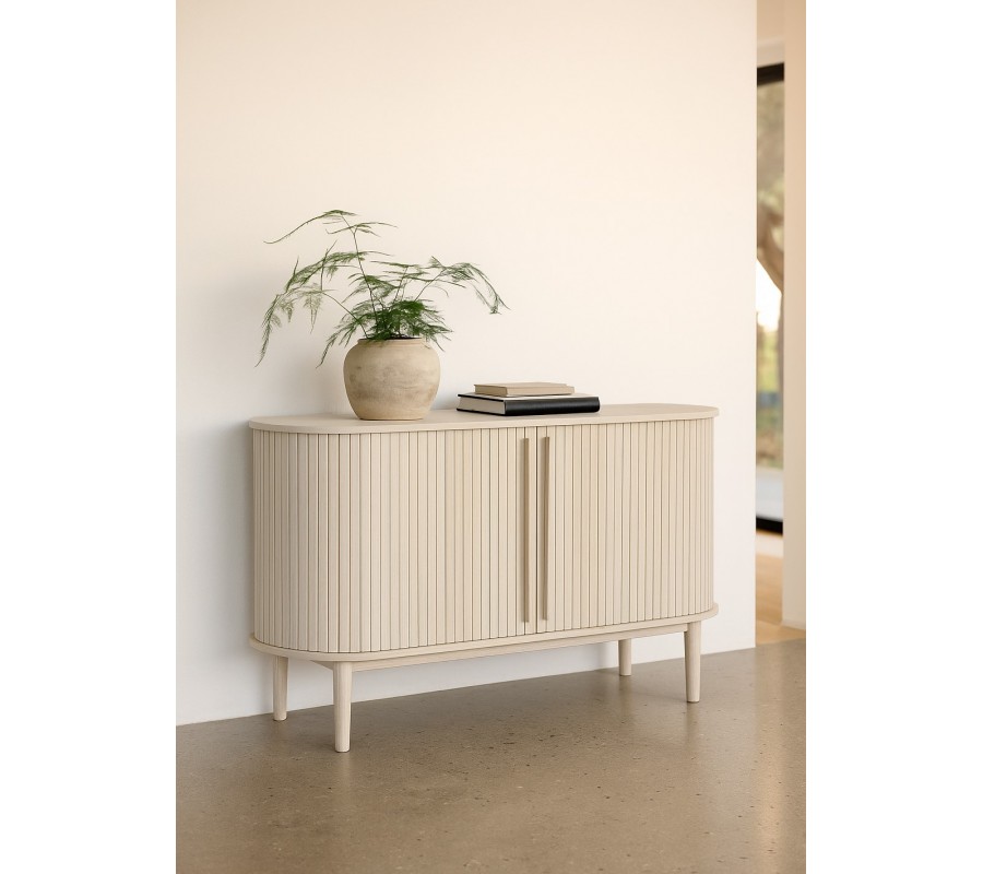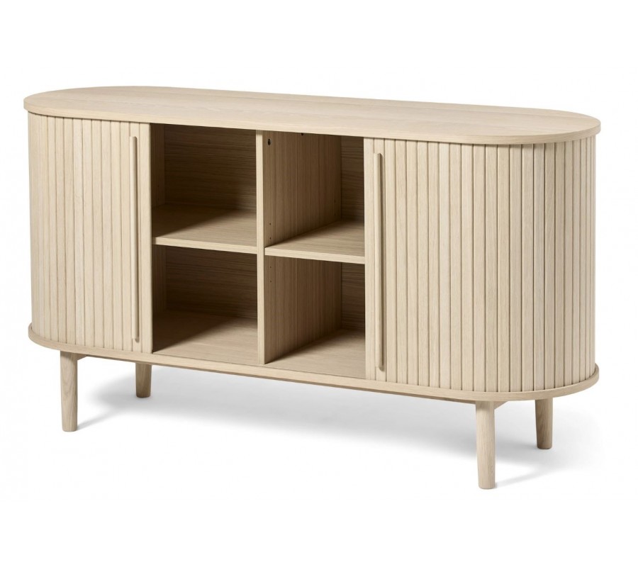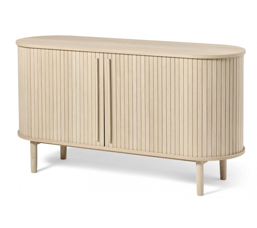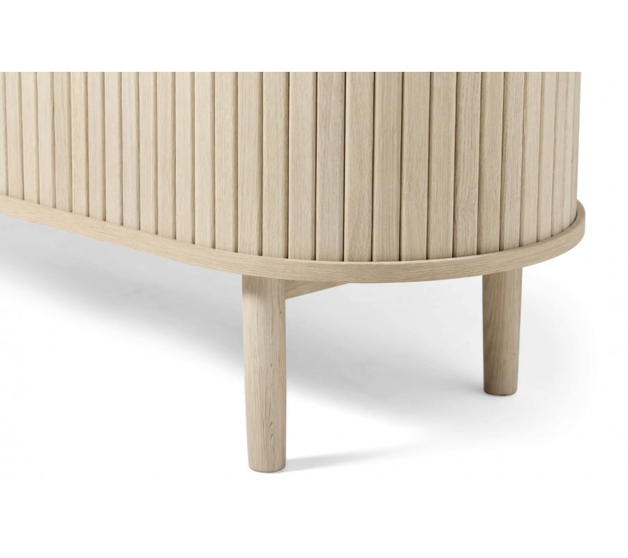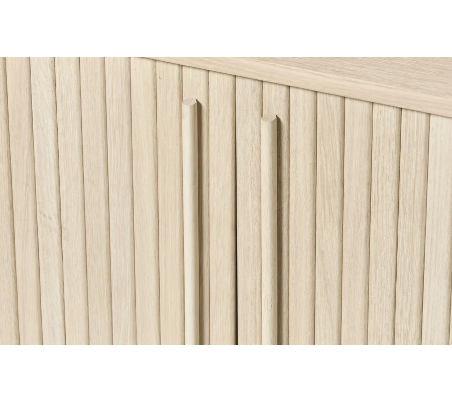 Škandinávsky oválny dvojdverový príborník Alborg s lamelovým dizajnom v svetlom hnedom dubovom prevedení 140 cm