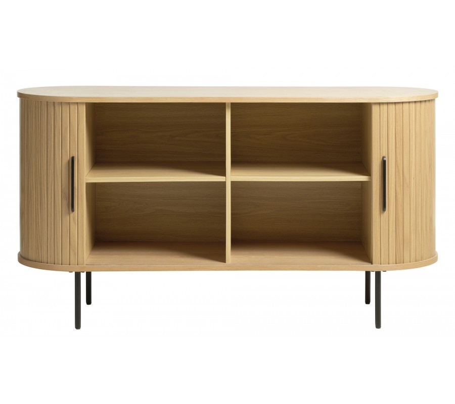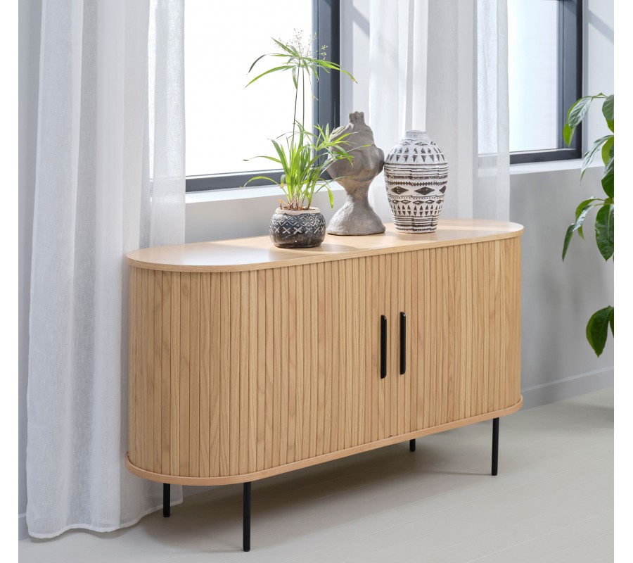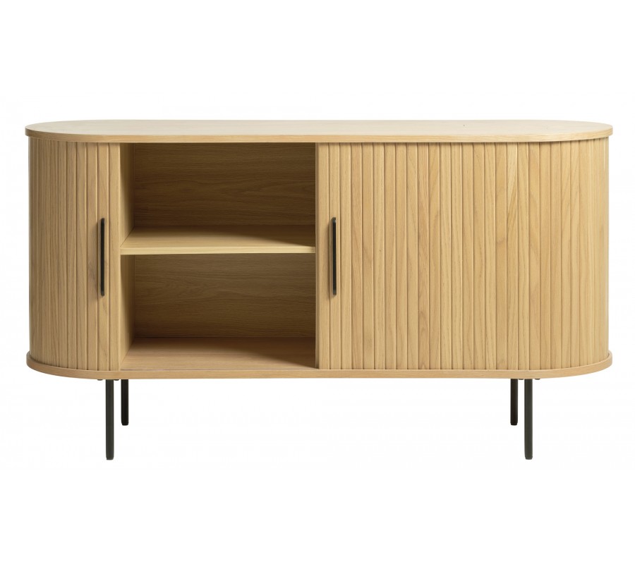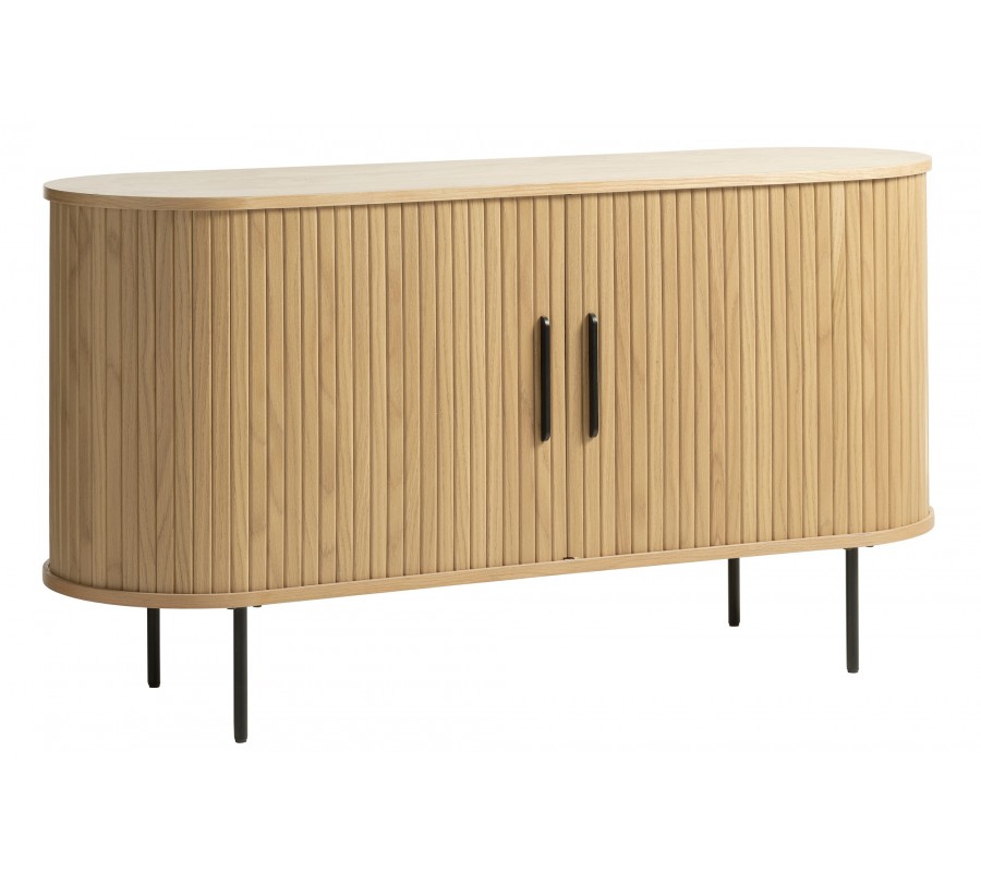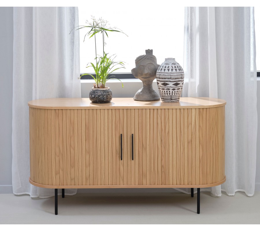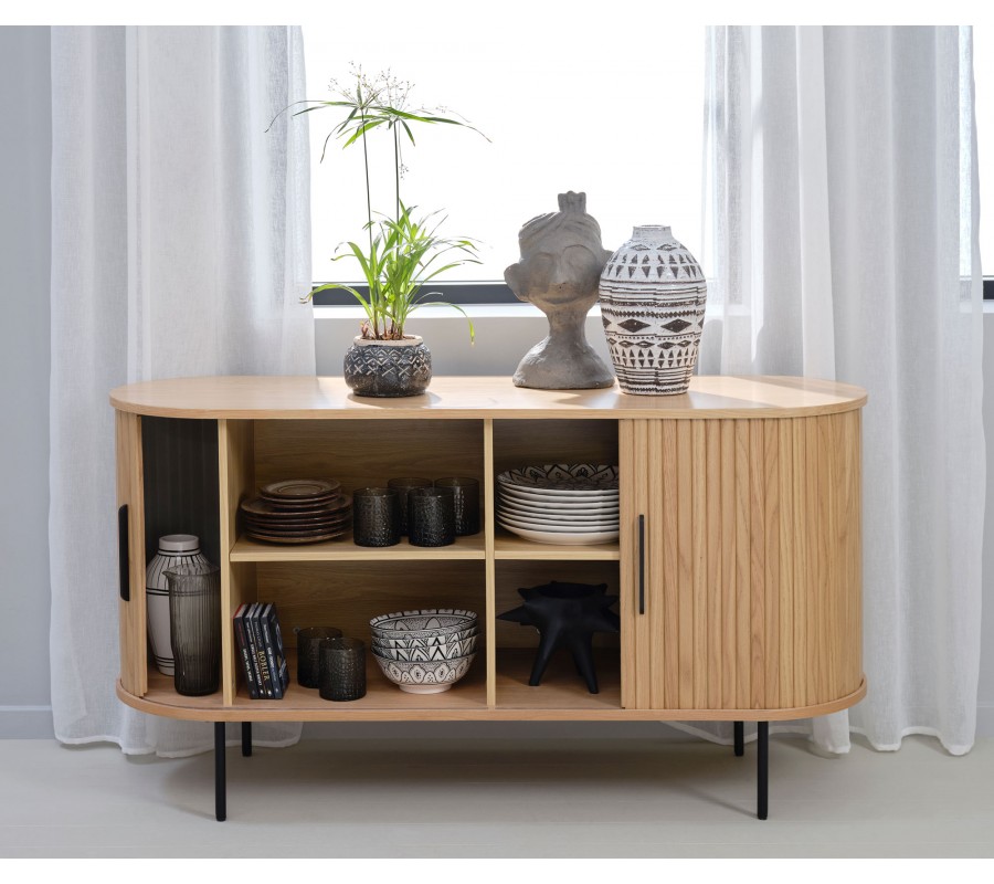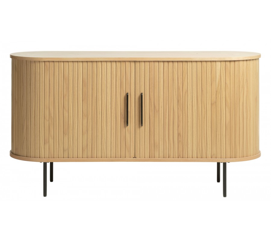 Škandinávsky dvojdverový príborník Bornholm oválneho tvaru s lamelovým reliéfom v svetlom hnedom dubovom prevedení 140 cm