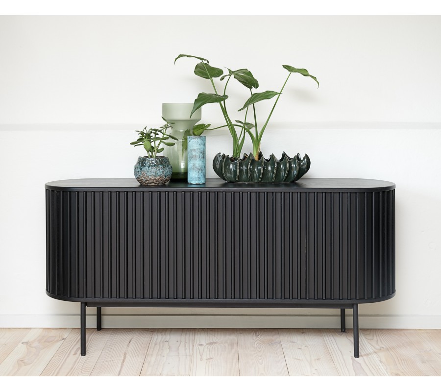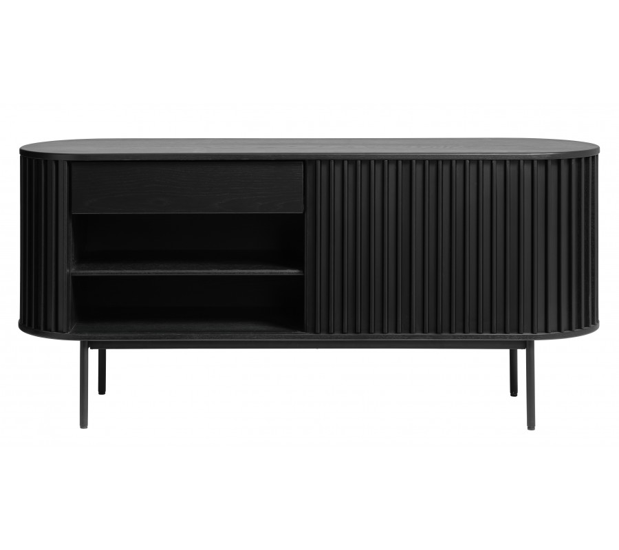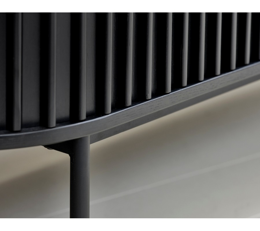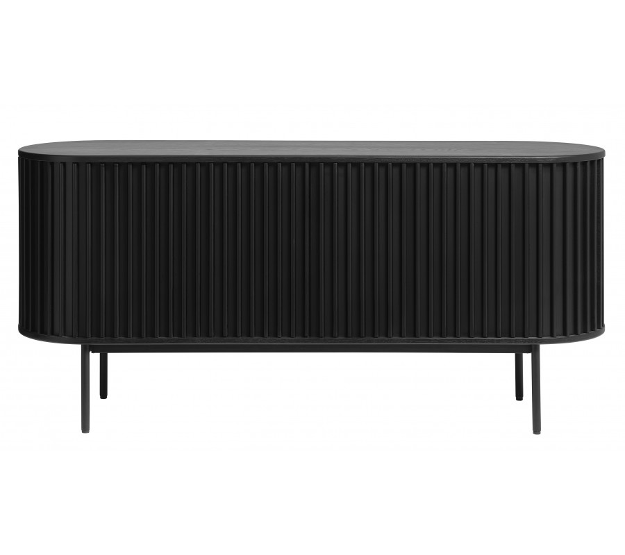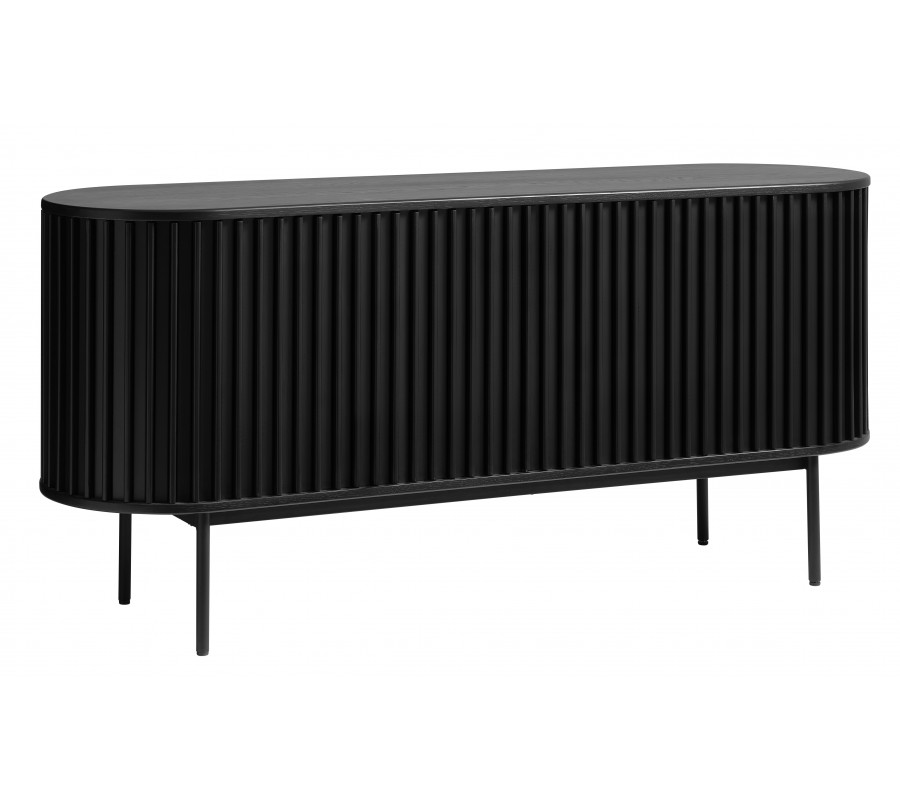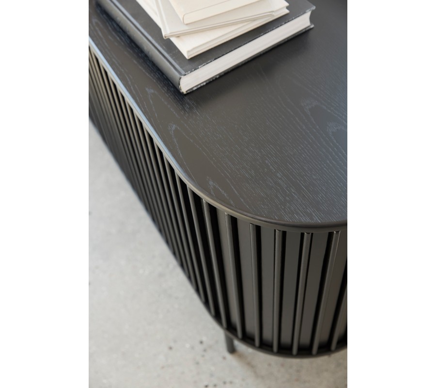 Luxusný moderný oválny príborník Odense s dvomi posuvnými dvierkami s lamelovým dizajnom v čiernej farbe 160 cm