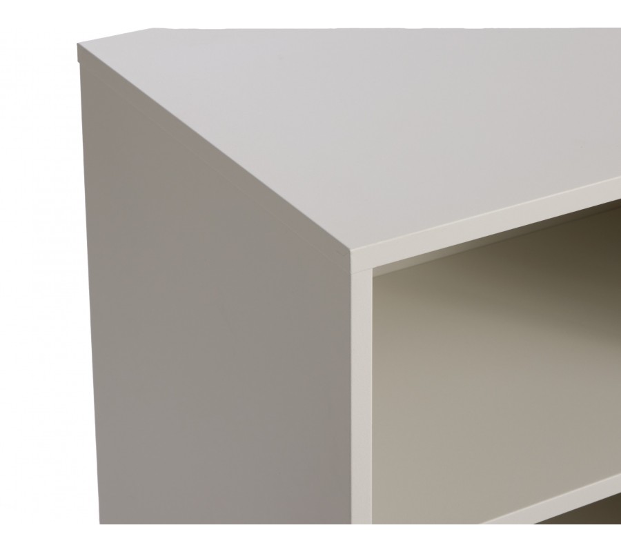 Úložný priestor obsahuje na pravej strane užšiu otvorenú časť s dvoma policami rôznej výšky, ktoré do dizajnu vnášajú jemnú asymetriu. Zvyšok interiéru za posuvnými dvierkami je rozdelený na štyri rovnako veľké priečinky v dvoch úrovniach. Vrchná doska v obdĺžnikovom tvare ponúka dostatok miesta na dekorácie, servírovanie alebo odkladanie drobností.