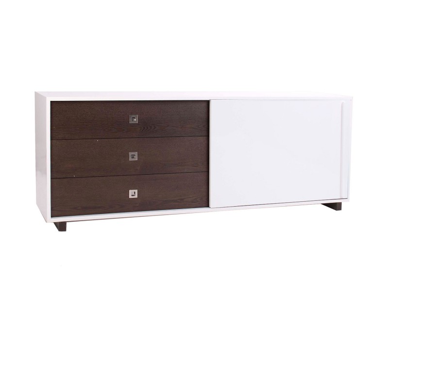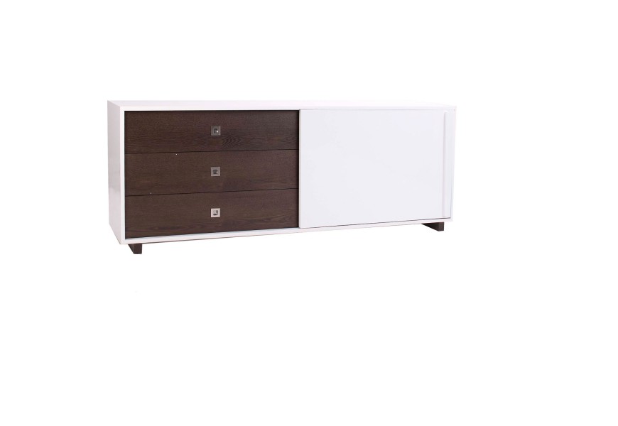 Elaborado en madera DM, este buffet es perfecto para decorar la entrada con un toque acogedor. Completa la decoración con un espejo y un jarrón de vidrio