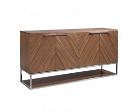 Luxusný moderný štvordverový príborník Vita Naturale v prírodnej hnedej farbe so vzorom rybej kosti a chrómovými detailmi 160 cm