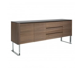 Luxusný moderný príborník Vita Naturale v orechovej hnedej farbe s chrómovými nožičkami a čiernou sklenou vrchnou doskou 200 cm