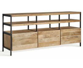 Industriálny moderný príborník Dureti z mangového dreva hnedej farby s čiernym kovovým rámom 180cm