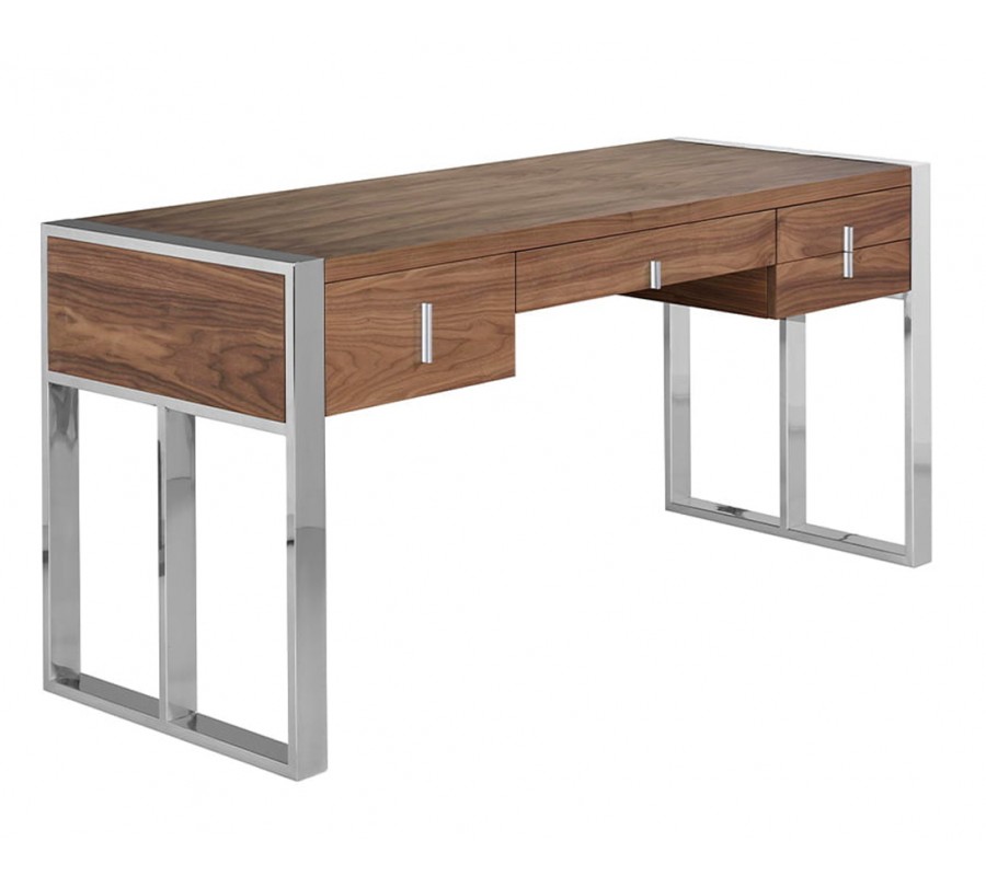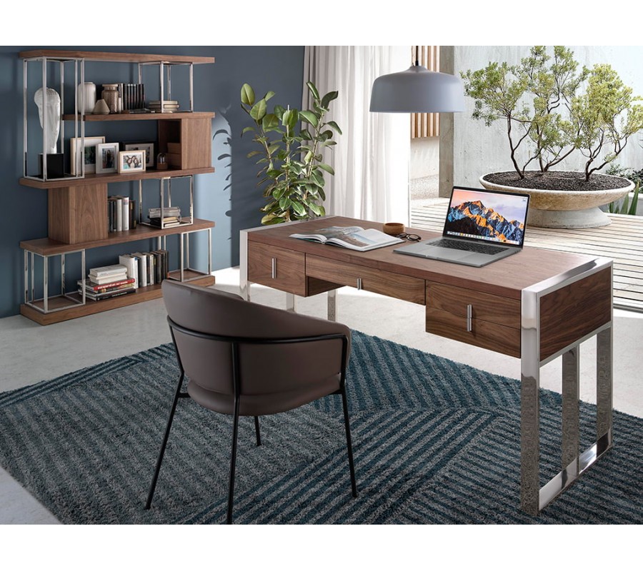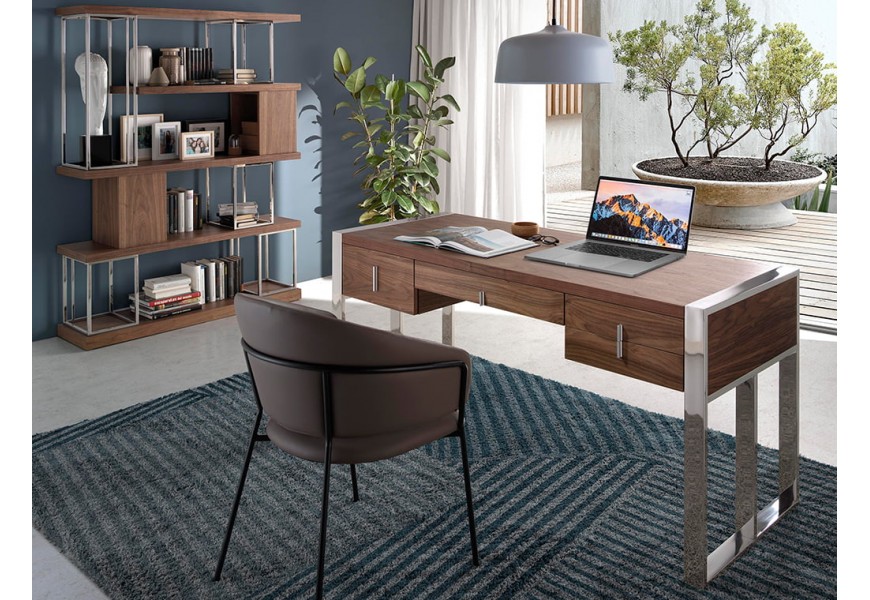 Súčasťou balenia pracovne Vita Naturale II je luxusný pracovný stôl, ktorý Vás očarí svojou kombináciou dreva s orechovým dyhovaním v prírodne hnedej farbe a pochrómovanými nožičkami v striebornej farbe. Pracovný stôl Vita Naturale je nie len dizajnovo pôvabný, ale vďaka početným zásuvkám bude veľmi praktickým nábytkom pre Vašu pracovňu.