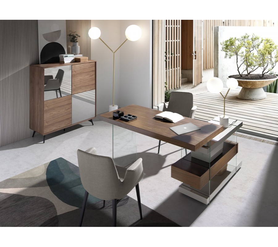 Hlavnou súčasťou balenia je luxusný pracovný stôl Vita Naturale, ktorý sa stene centrálnym prvkom Vašej kancelárie vďaka svojmu ergonomickému dizajnu, modernému drevenému prevedeniu so sklenenými prvkami a sofistikovane uloženými zásuvkami.