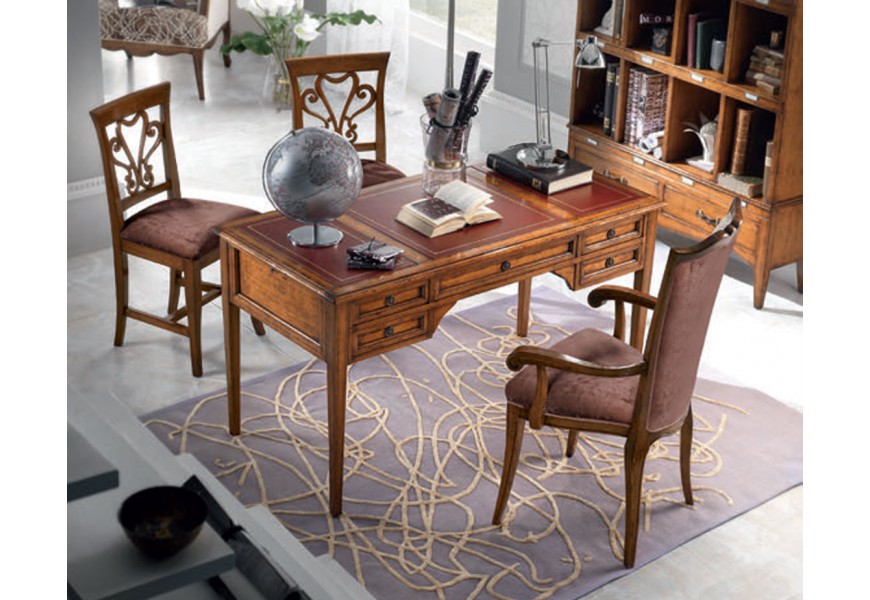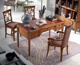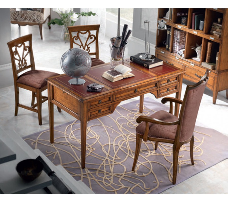 Luxusná rustikálna pracovňa prináša to najlepšie z dielne talianských majstrov. Spojením luxusných prvotriednych materiálov vzniká unikátna pracovná zostava. V zostave nájdete luxusný rustikálny pracovný stôl, ktorý dopĺňa luxusné rustikálne pracovné kreslo s čalúnenými pracovnými stoličkami,ktoré podčiarkujú celkový jedinečný vzhľad pracovne. Produkty sú vyrobené z kvalitného masívneho dreva, ktoré je upravené rezbárskymi technikami ako sú detaily alebo intarzia. Jeho vyzuál je mohutný pričom je zjemnený nožičkami, ktoré opticky nábytok odľahčujú. Luxusná rustikálna pracovná zostava sa skladá so zakázkového nábytku s možnosťou voľby farebného prevedenia, ktoré môžete špecifikovať. poznámke. Nábytok odporúčame kombinovať s ostatným talianským a španielským nábytkom a kolekciami Pasiones, Clasica a Castilla.