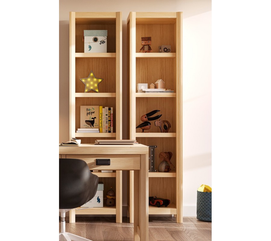 V zostave Lyon dominujú rovné línie a hladké povrchy, ktoré vytvárajú elegantný a distingvovaný moderný dizajn. Nábytok je vyrobený z kvalitného masívneho dreva, čo mu dodáva príjemný teplý charakter. Písací stôl vám poskytne dostatočne veľkú pracovnú plochu a čalúnená stolička vám zaručí pohodlie aj počas dlhšieho sedenia. Knižnice s rozličnou šírkou vám zasa umožnia vyskladať si praktický úložný priestor presne podľa vašich predstáv.