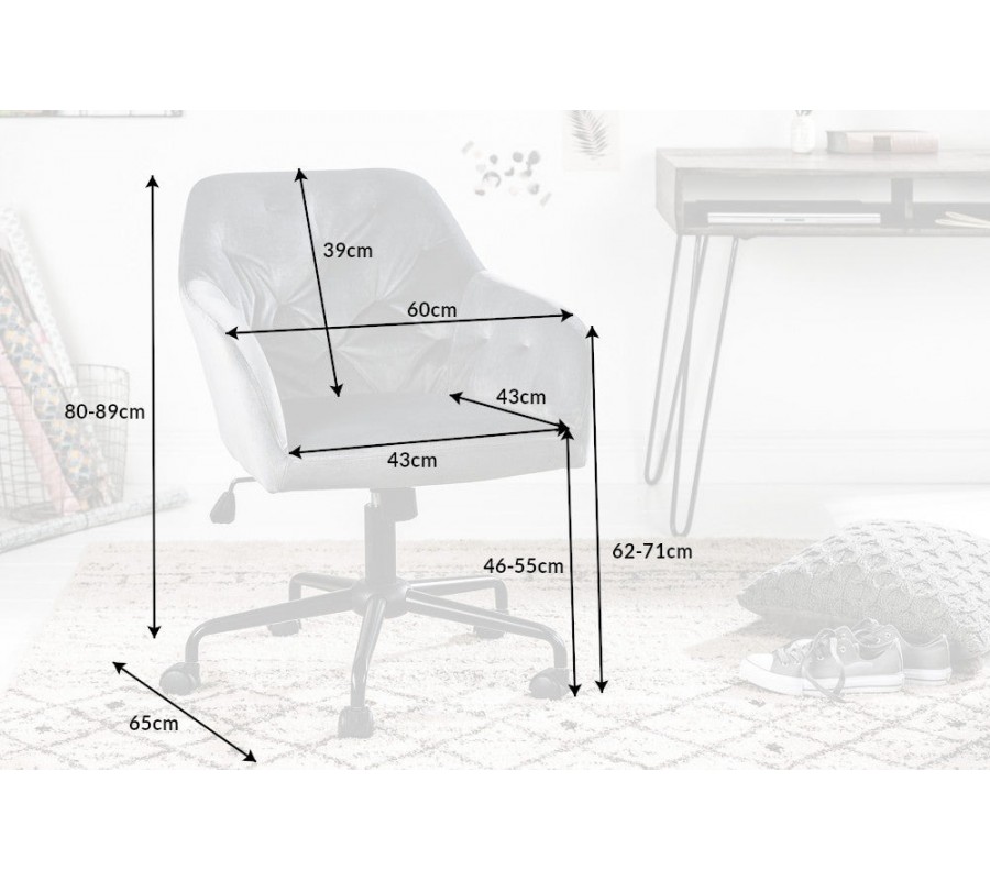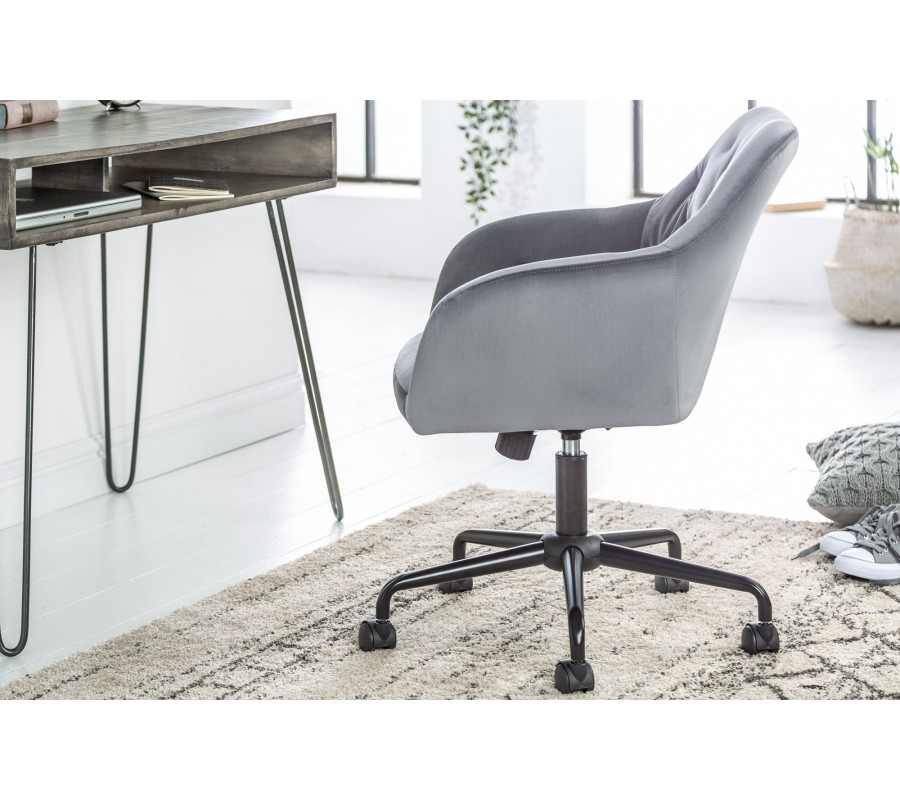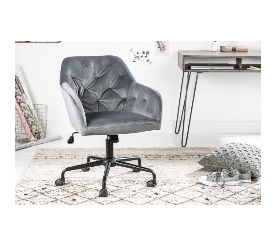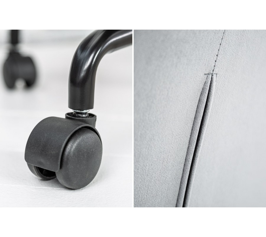 Chcete sa pri práci cítiť naozaj komfortne? Toto exkluzívne kancelárske kreslo Berthe bolo navrhnuté špeciálne pre vaše pohodlie! Okrem praktickej pohyblivosti a koliesok, ktoré umožňujú ľahký pohyb, kreslo disponuje príjemným zamatovým poťahom strieborno sivej farby, ktorý však nie je len pohodlný, ale vzbudzuje aj luxusný dojem. Zároveň pôsobí štýlovo a retro. Rám z kovu v tmavej farbe necháva sedaciu časť vyniknúť a príjemne dopĺňa celkový dizajn. Kancelárske kreslo Berthe skvelo zapadne do minimalisticky zariadeného interiéru.