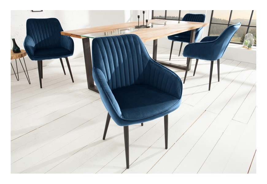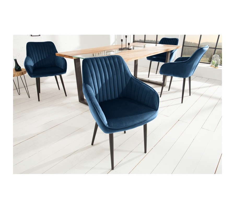 Dizajnové kreslo Null v príjemnej tmavomodrej farbe zaručene osvieži váš štýlový retro interiér. Čierne kovové nohy modrú príjemne dopĺňajú a tvoria s ňou pekný súlad. Jedinečné je však nielen svojím farebným prevedením, ale aj poťahom z príjemného zamatu, ktorý sa postará o váš stopercentný komfort. Operadlo aj opierky na ruky sú uspôsobené k dokonalému pohodliu. Kreslo Null sa stane vaším obľúbeným spoločníkom pri práci či oddychu. Skvelo sa hodí do retro či industriálnych interiérov a farebne zapadne všade, kde môže vyniknúť.