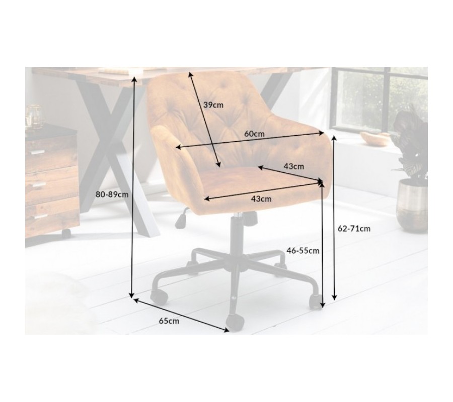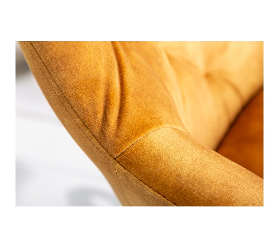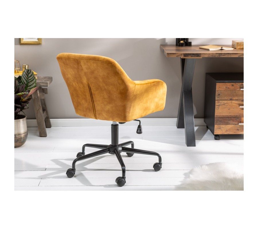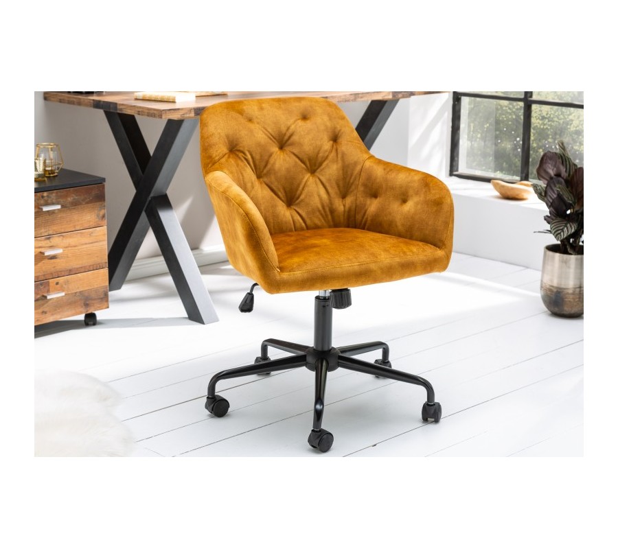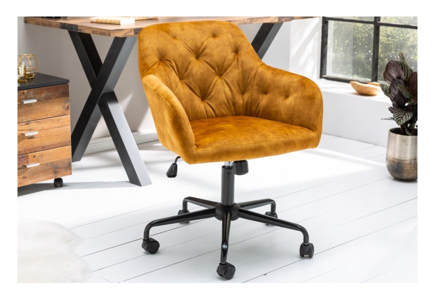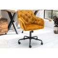 Chesterfield zamatová kancelárska stolička Berthe na kolieskach v žltom poťahu 89cm