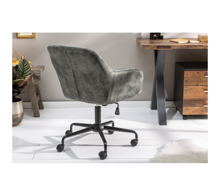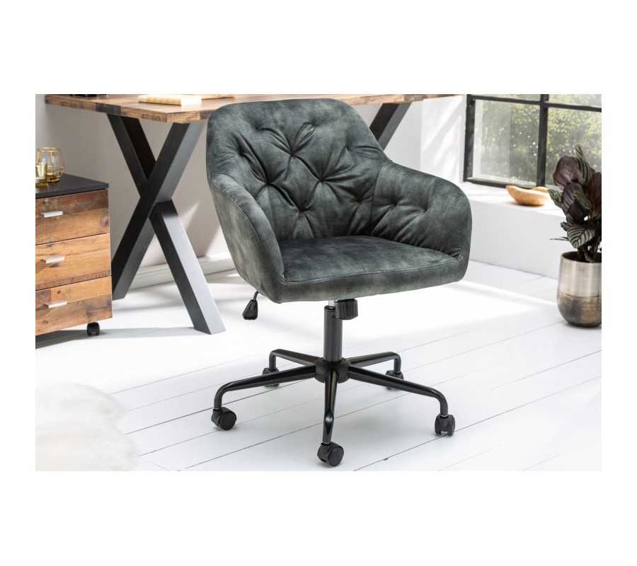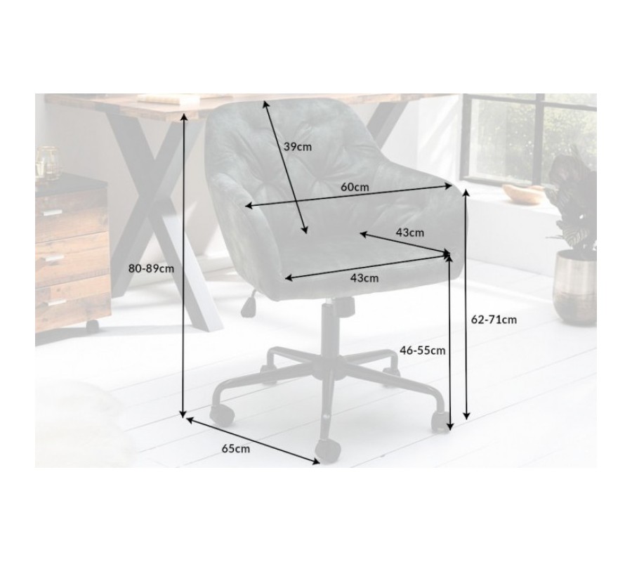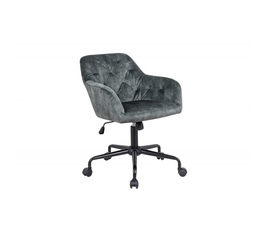 Luxusná kancelárska stolička Berthe vás na prvý pohľad zaujme svojim výrazným prešívaním a farebným prevedením čalúnenia. Jednoduchý tvar je doplnený dekoratívnym prešívaním v obľúbenom Chesterfield štýle, ktorý vďaka zamatovému poťahu získava nezameniteľný pôvab luxusu. Pohodlie je vďaka čalúneným opierkam na ruky zachované aj počas dlhšieho sedu. Čalúnená časť stoličky je doplnená modernou kovovou kancelárskou konštrukciou, ktorá je výškovo polohovateľná a doplnená praktickými kolieskami. Tento štýlový kúsok môžete kombinovať s masívnym nábytkom či kovovými prvkami vo vašej luxusnej domácej pracovni alebo reprezentatívnych rokovacích priestoroch firiem.
