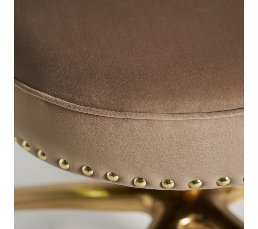 Art-deco otočná stolička Portkey so zamatovým čalúnením vo farbe latte a so zlatou kovovou konštrukciou 88cm