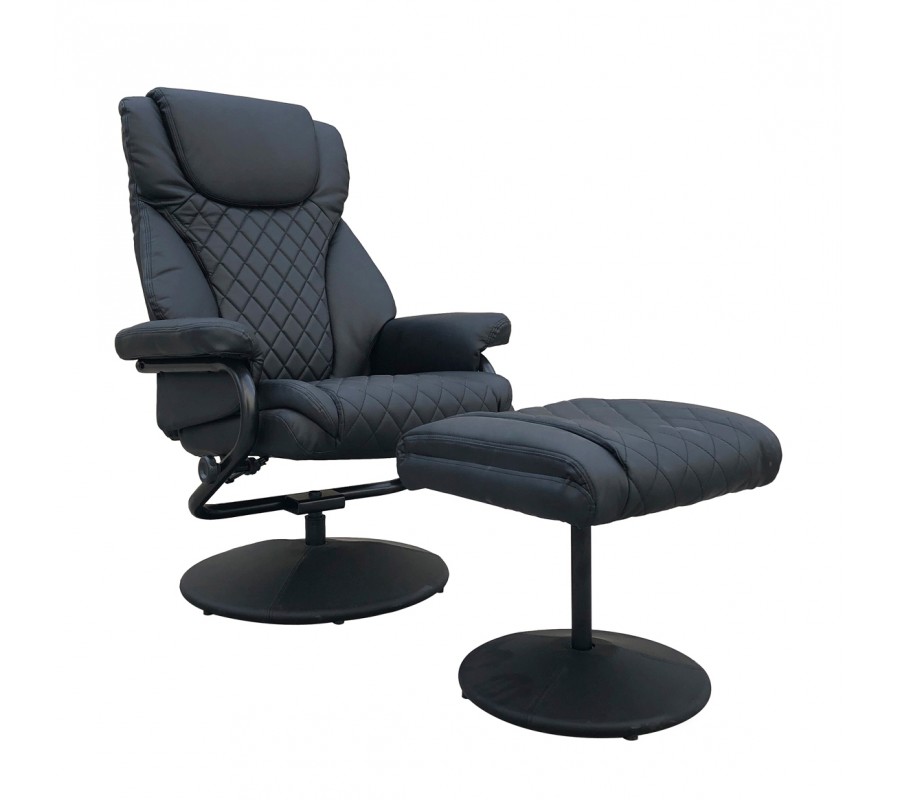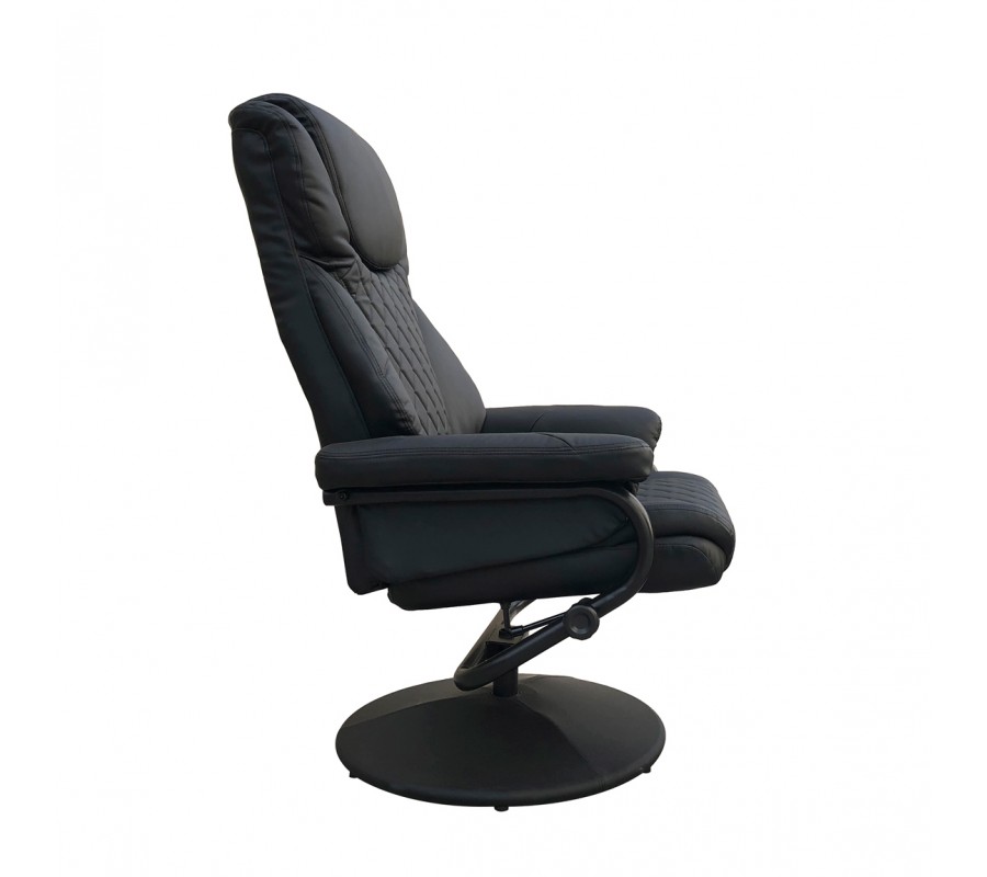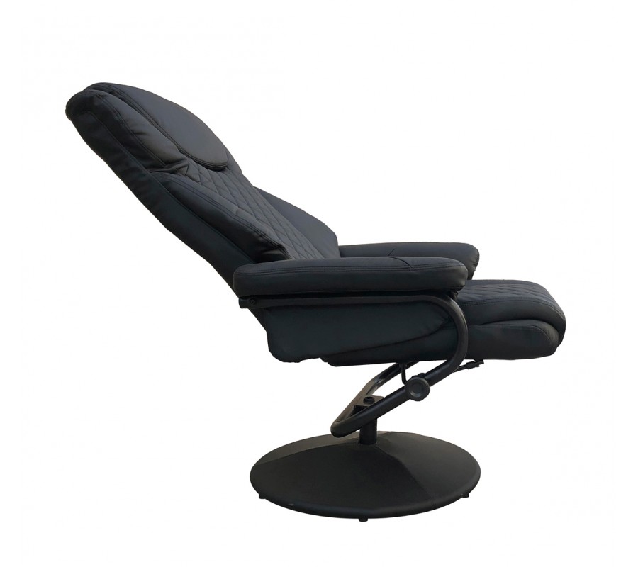 Relaxačné polohovateľné čalúnené kožené kreslo Valeriana v čiernom prevedení na okrúhlom podstavci s podnožkou 112cm