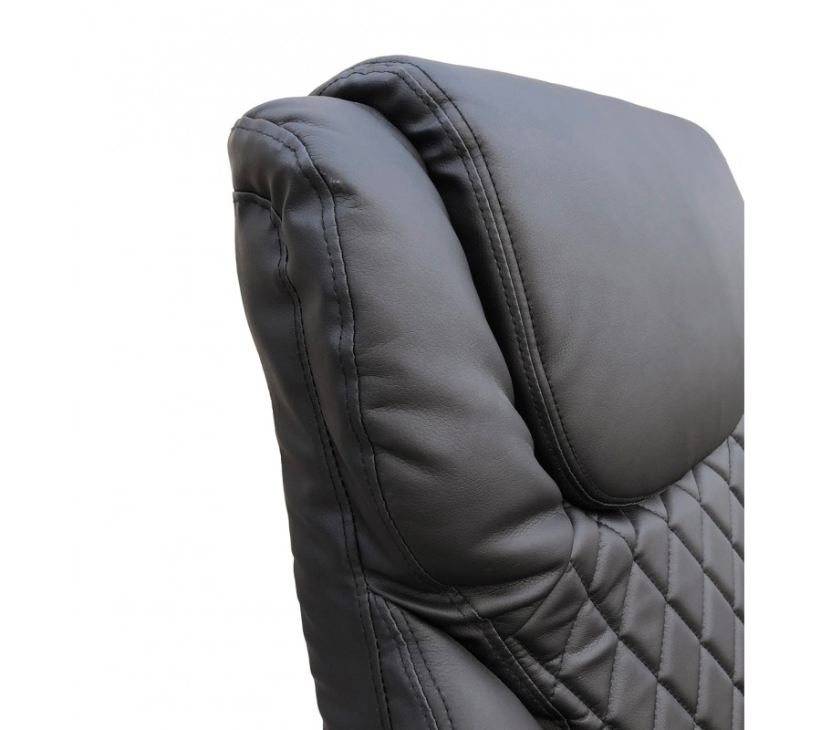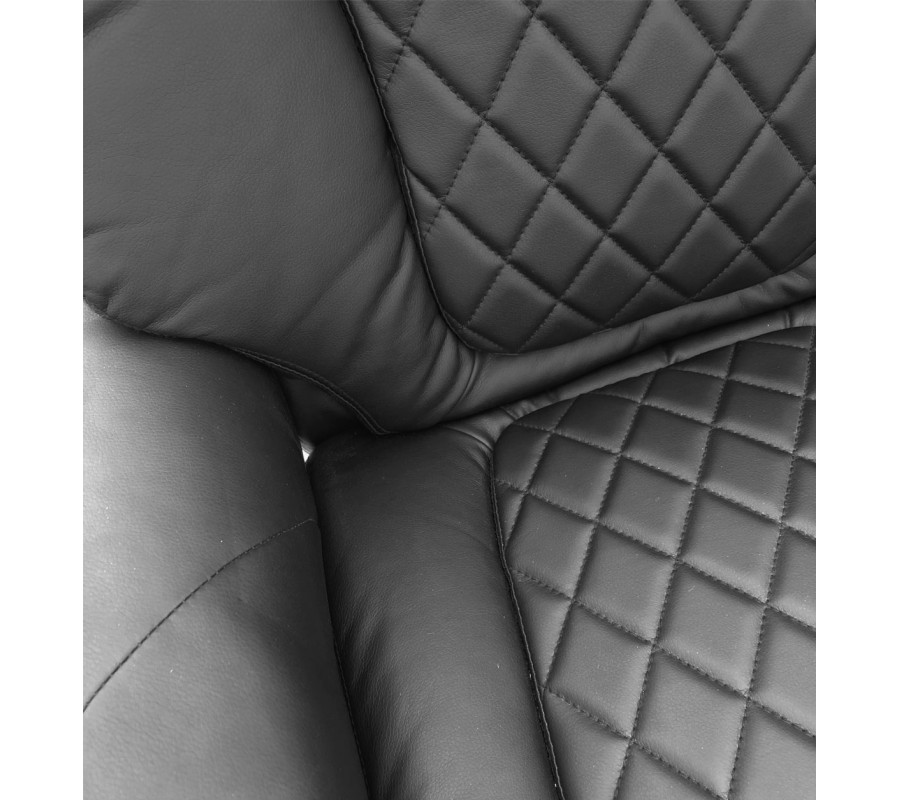 Dopriať si zaslúžený oddych po dlhom a náročnom dni je tou najlepšou možnou odmenou. Kreslo Valeriana vám poskytne relax v pravom slova zmysle vďaka svojmu ergonomickému tvaru spolu s praktickou podnožkou. Čalúnenie kresla je v klasickej čiernej eko koži, ktorá sa veľmi jednoducho čistí a udržiava. Stabilitu a pevnosť zabezpečuje kovová konštrukcia spájajúca sa do kovovej nohy vyúsťujúcej do okrúhleho podstavca rovnako čalúneného. Sofistikované mäkké tvarovanie opierky na hlavu a ruky vám dopraje odpočinok, aký si zaslúžite. Stred sedadla aj operadla je kosoštvorcovito prešívaný a pôsobí veľmi štýlovo a elegantne. Vaše nohy sa potešia prídavnej podnožke v rovnakom prevedí, a tak si oddýchne každá časť tela. Okrem nestarnúceho dizajnu vhodného do klasických obývačiek či spální je možné kreslo Valeriana polohovať smerom dozadu a vytvoriť si výborné podmienky na relaxáciu. Polohovanie si jednoducho nastavíte otočným kolieskom.