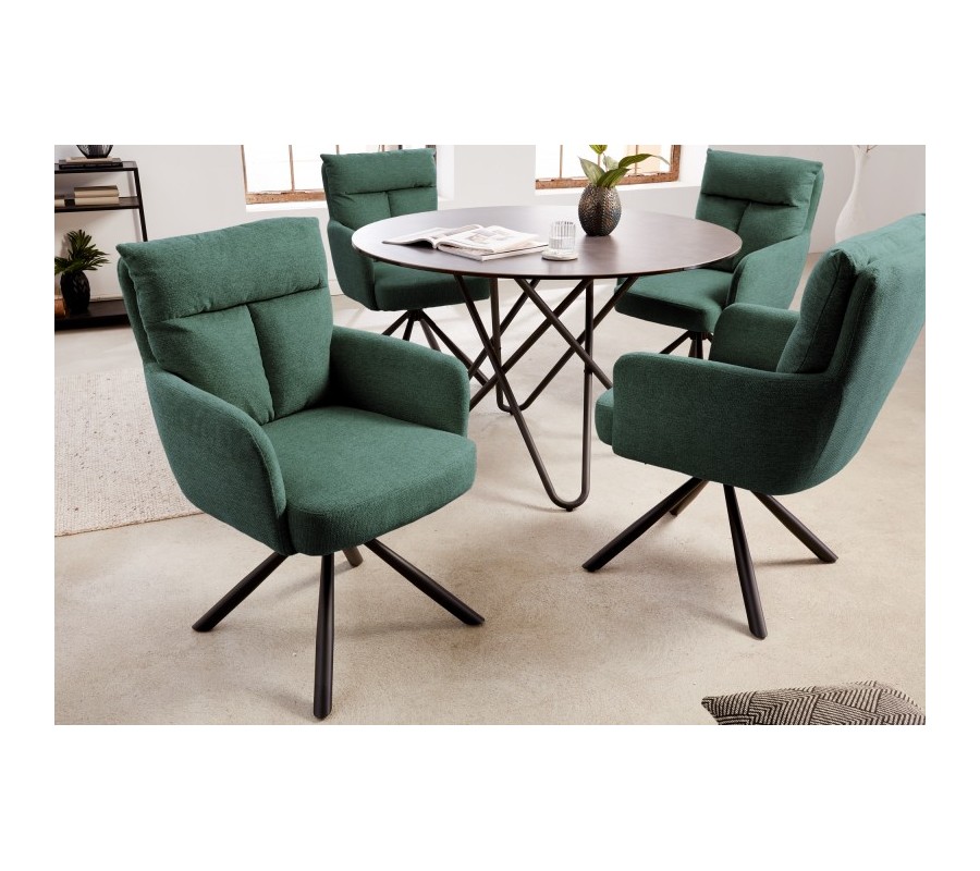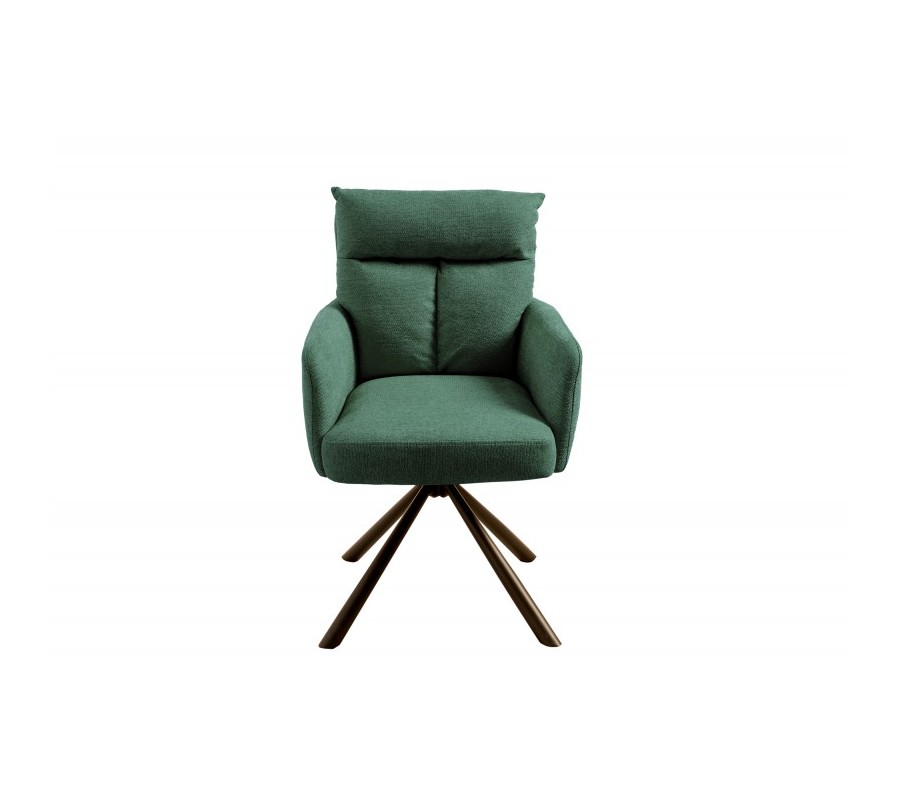 Ak hľadáte praktickú, pohodlnú a zároveň dizajnovo zaujímavú stoličku do vašej kancelárie, pracovne či jedálne, ste na správnom mieste! Štýlová stolička Dover je vďaka svojmu univerzálnemu prevedeniu skvelým spoločníkom či už pri práci, štúdiu alebo pri stolovaní. Praktická funkcia otáčania sedacej časti o 360 stupňov poteší všetkých, ktorí ocenia flexibilitu pohybu. O vaše pohodlie sa postará mäkké prešívané čalúnenie, jemne tvarované operadlo a praktické podrúčky. Poťah v štýlovej tmavozelenej farbe krásne rozžiari svetlejšie i tmavšie ladené priestory a zároveň pôsoví elegantným dojmom. Kontrastným prvkom sú industriálne ladené čierne nožičky z kovu, ktoré svojím zaujímavým zošikmením umocňujú jemný retro nádych stoličky. Farebná aj materiálová kombinácia robia zo stoličky Dover univerzálny a ľahko kombinovateľný kúsok, ktorý možno umiestniť nielen do retro, ale aj industriálne a moderne ladených priestorov. Stoličky Dover môžu doplniť aj hotelové priestory či zasadacie miestnosti a v kombinácii s čiernym kovovým stolom či regálom krásne dotvoria nadčasový efekt!