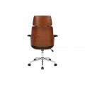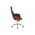 Dizajnová kožená otočná kancelárska stolička Madison s drevenými prvkami na kolieskach hnedá čierna 64 cm