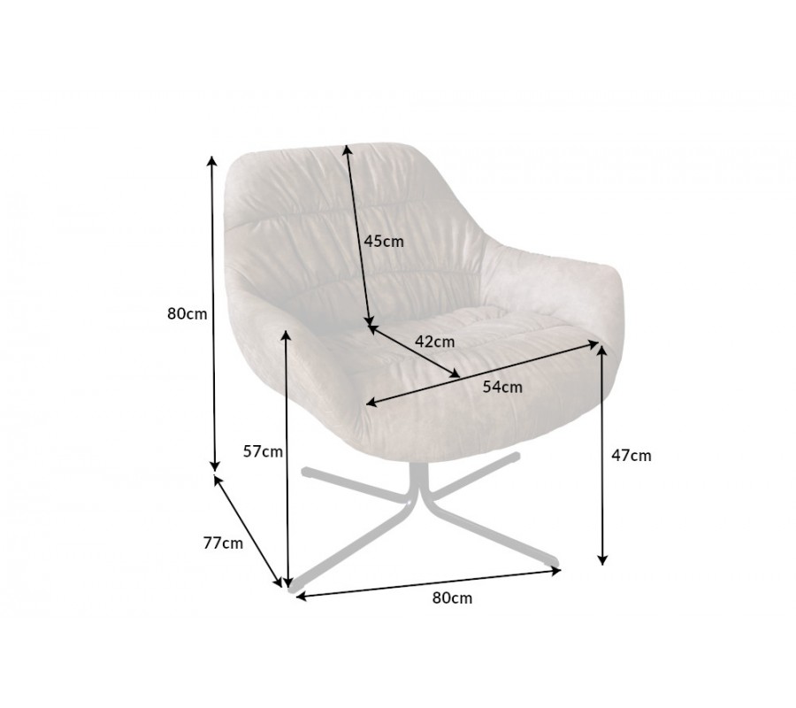 Štýlové otočné kreslo Dumfies je skutočným dizajnovým kúskom v retro štýle, spájajúcim originálny design, univerzálnu farebnosť a vysoký komfort. Príjemný zamatový poťah zaručuje vaše pohodlie a vďaka sivej farbe skvele zapadne do priestorov ladených do čiernej, bielej, béžovej, hnedej a sivej farby . Jeho dizajn je dokonale dotvorený elegantnou čiernou konštrukciou z kovu, ktorá zaisťuje výbornú stabilitu. Poťah kresla sa pri prešívaní zbieha do vrásnenia čo vytvára zaujímavý efekt a jeho celkový dojem.