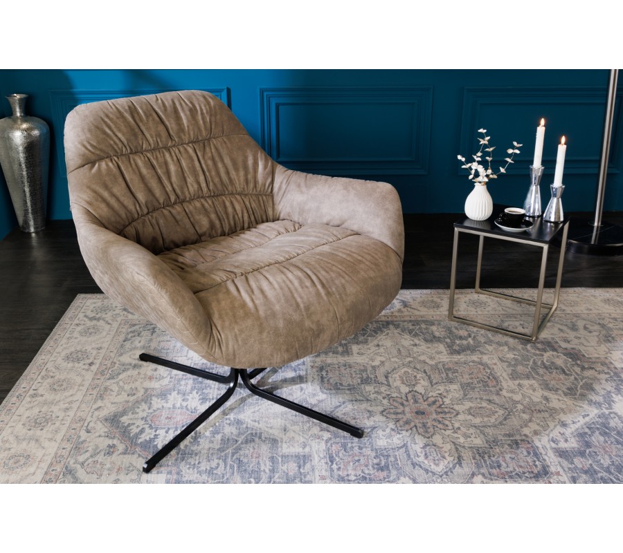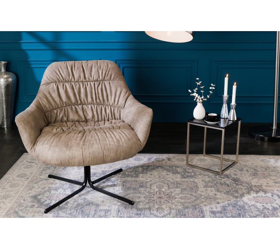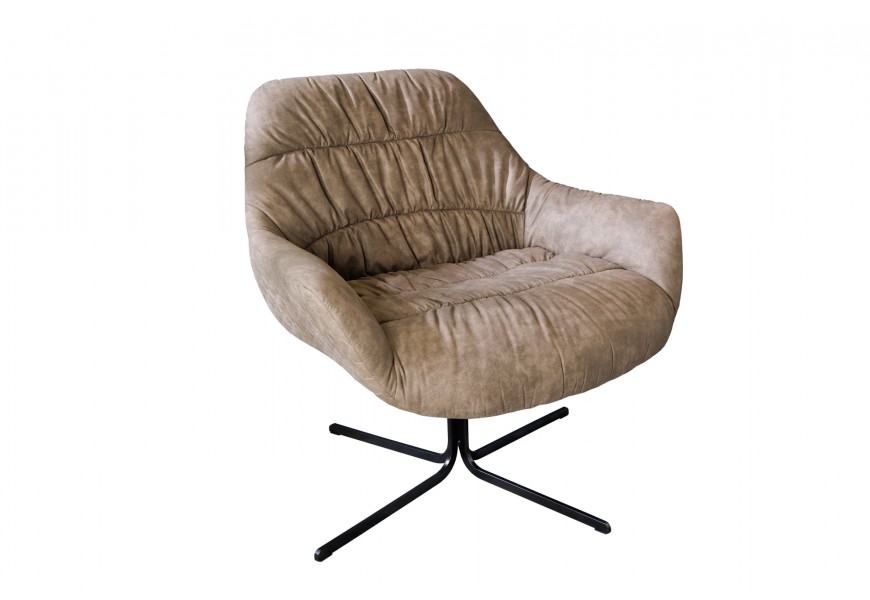 Retro dizajnové čalúnené otočné kreslo Dumfies so zamatovým poťahom v šedo hnedej farbe 80 cm