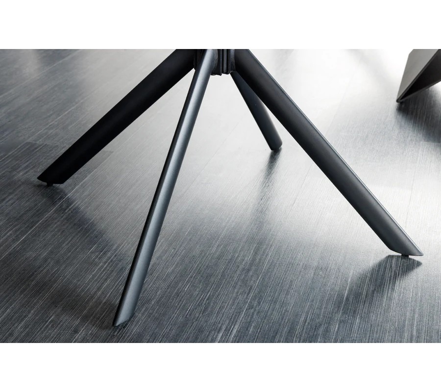 Kovové nožičky v čiernej farbe sú usporiadané dostabilného štvorramenného dizajnu, ktorý podčiarkuje moderný štýl a zároveň zaisťuje pevnosť a stabilitu.
