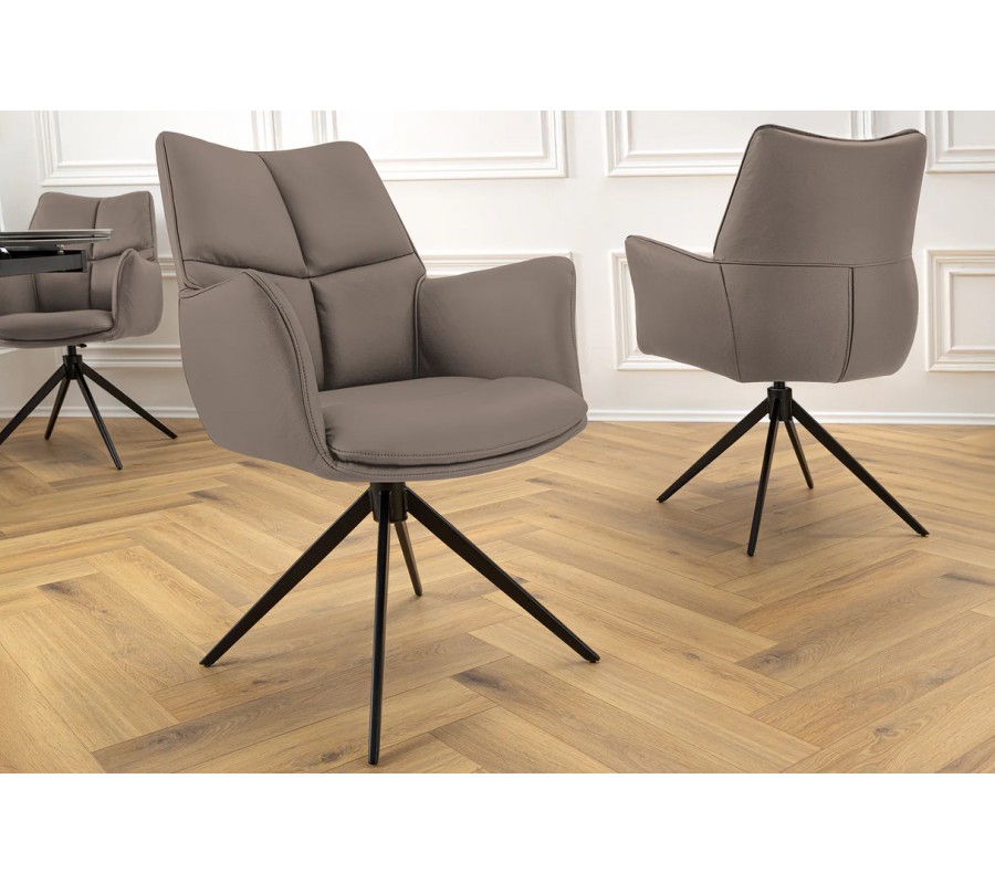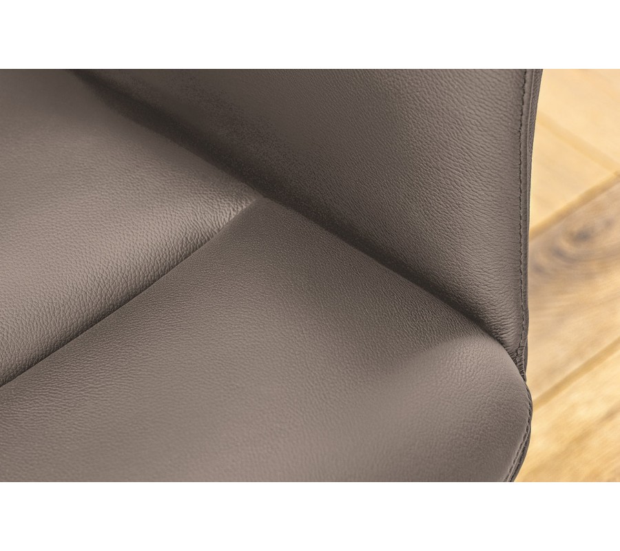 Moderná otočná jedálenská stolička Mariposa zaujme svojím funkčným a elegantným dizajnom, ktorý spája komfort a vizuálnu čistotu. Jej poťah z kvalitnej eko kože v hnedej farbe pôsobí matne a zároveň príjemne na dotyk. Výhodou eko kože je jednoduchá údržba, odolnosť voči oderu a prémiový vzhľad.