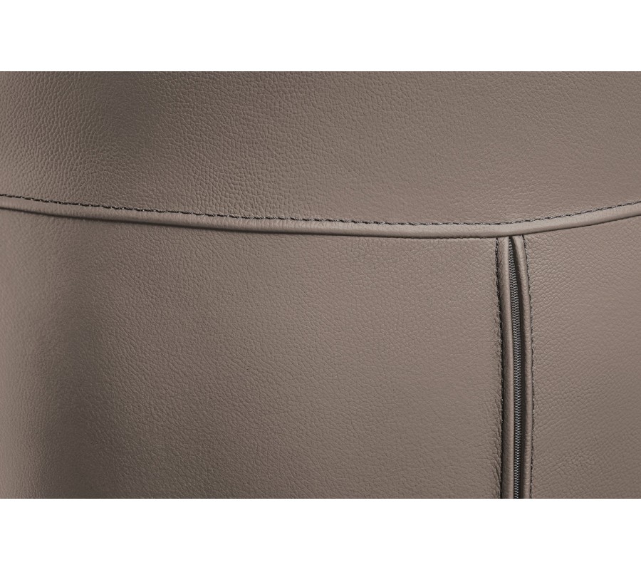 Chrbtová opierka je členená výrazným štruktúrovaným prešívaním do štyroch plôch, ktoré vytvárajú vizuálne členitý efekt a zároveň zabezpečujú pohodlné podoprenie. Bočné opierky na ruky sú úzke a jemne prehnuté, plynulo nadväzujúce na tvar sedadla, čím vytvárajú harmonickú a ergonomickú siluetu.