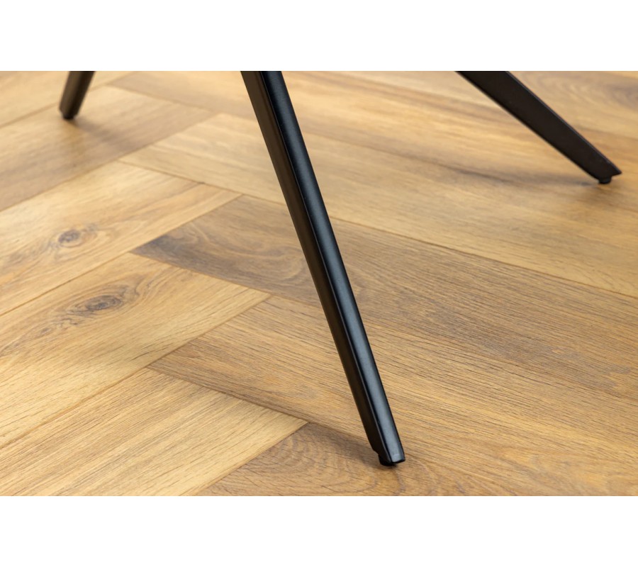 Stolička stojí na kovovej podnoži v čiernej matnej farbe, ktorá sa rozvetvuje do štyroch nožičiek, čím poskytuje stabilitu a zároveň pôsobí vzdušne. Otočný mechanizmus o 360 stupňov zvyšuje jej flexibilitu, vďaka čomu je vhodná nielen do jedálne, ale aj do domácej pracovne alebo kancelárie.