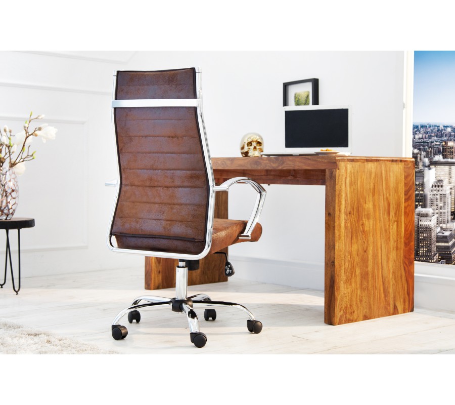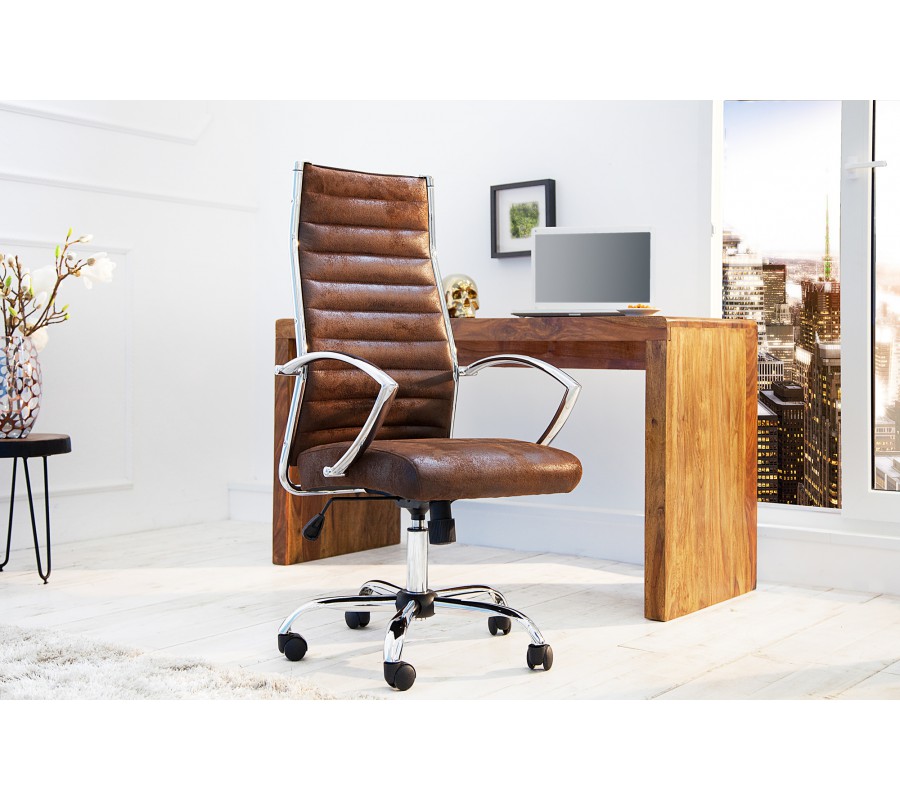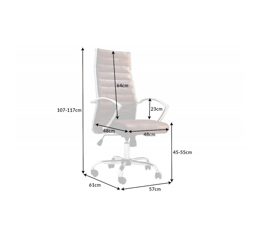 Moderná kancelárska stolička Big Deal v hnedej antickej farbe s kovovou konštrukciou a nastaviteľnou výškou 107-117cm