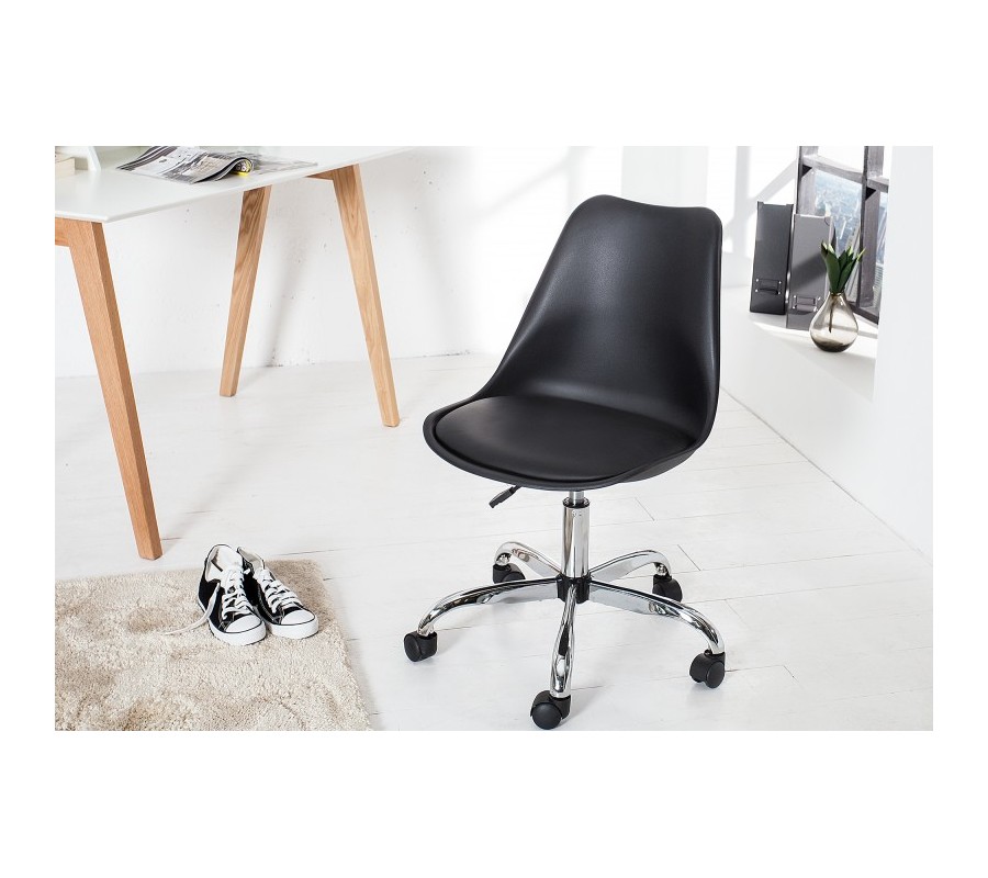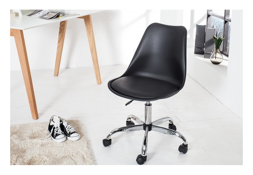 Dizajnová kancelárska stolička Scandinavia II Vás presvedčí svojim klasickým dizajnom a nadčasovým, čierno-strieborným farebným prevedením. Bude ideálnou voľbou či už do typicky moderných, alebo škandinávsky ladených pracovní s nádychom retra. Základná, chrómová konštrukcia je doplnená o pohodlné, tvarované sedadlo, ktoré je pre väčší komfort v spodnej časti čalúnené kvalitnou ekokožou.