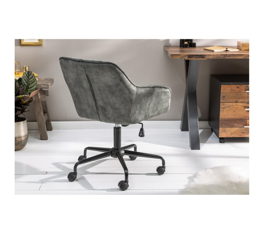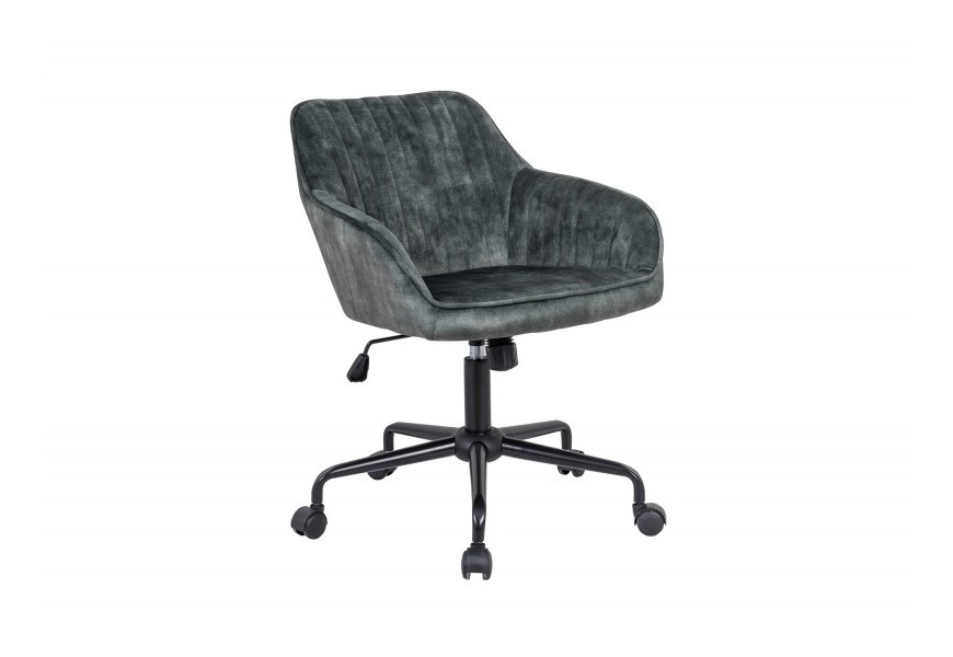 Moderný dizajn kancelárskej stoličky Vittel spája nadčasovú eleganciu s dokonalou funkčnosťou. Mimoriadne mäkký zamatový poťah v tmavom odtieni zelenej je doplnený jemným prešívaním na vnútornej strane sedadla. Čisté línie čalúneného sedadla sú doplnené modernou konštrukciou s kolieskami, ktorá umožňuje praktické posúvanie sedacej plochy podľa potreby užívateľa. Kancelársku stoličku Vittel môžete kombinovať s moderným masívnym nábytkom, skvele vynikne aj s kovovými prvkami v striebornej aj čiernej farbe. Okrem pracovne vo vašej domácnosti sa stolička stane dokonalým doplnením kancelárskych či rokovacích priestorov vašich firiem.