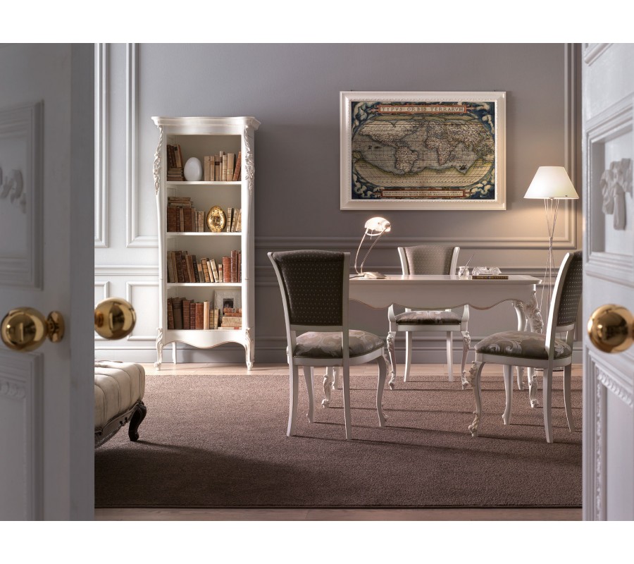 Luxusná rustikálna pracovná stolička s čalúnením na sedadle aj operadle predstavuje dokonalú syntézu pohodlia a štýlu. Jej úzke nožičky, zdobené s pozornosťou k detailom, dodávajú tomuto kúsku nábytku výnimočný charakter a rustikálny šarm. Čalúnenie, bohato zdobené, poskytuje nielen estetickú príťažlivosť, ale tiež zabezpečuje maximálne pohodlie pri sedení. Je zdobená precízne vyrezávanými vzormi kvetov dávajúcich stoličke barokový nádych.
