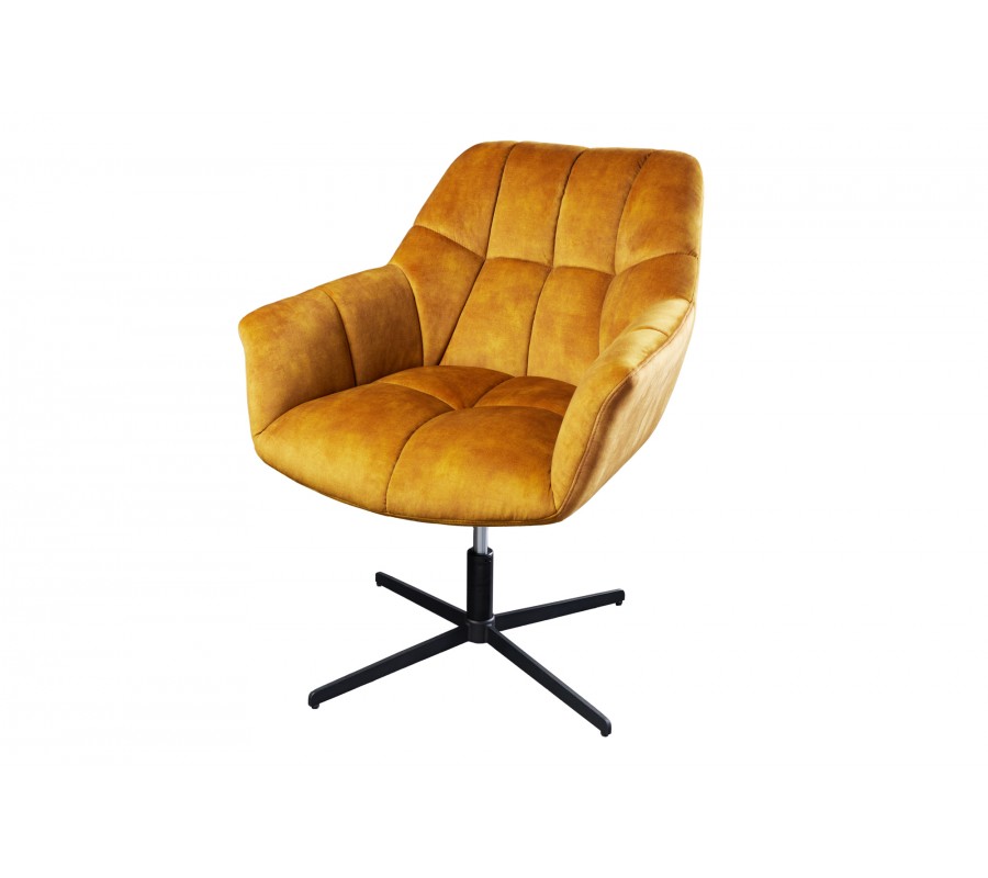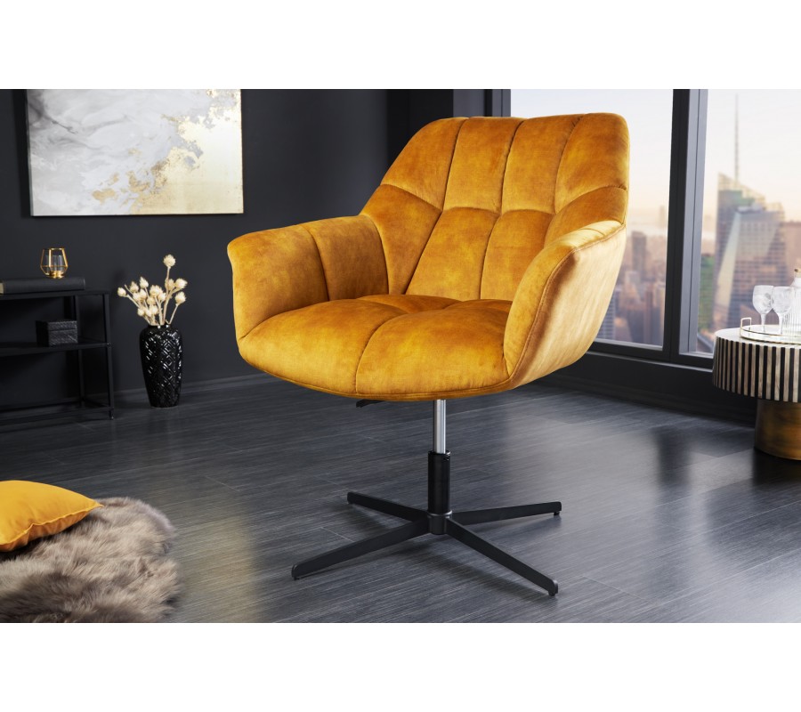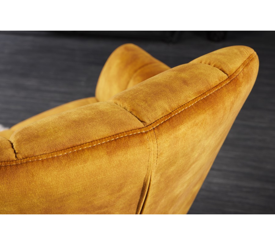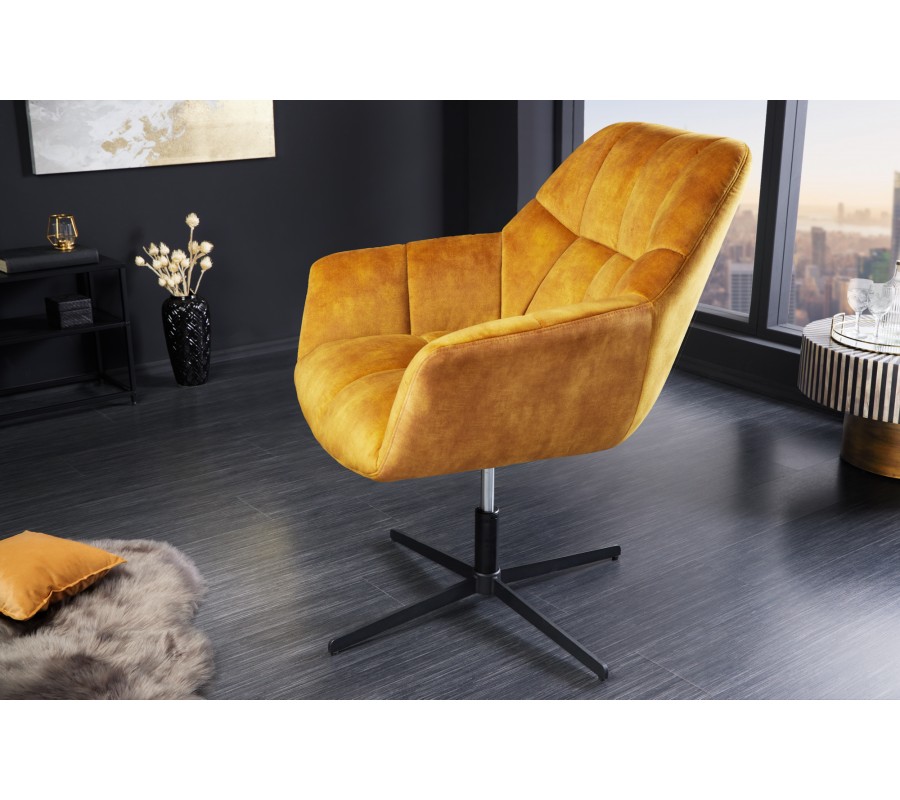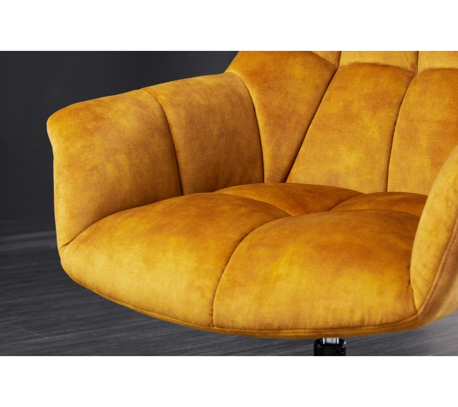 Dizajnové otočné výškovo nastaviteľné kreslo Mariposa v horčicovej farbe s čalúneným poťahom 89 cm