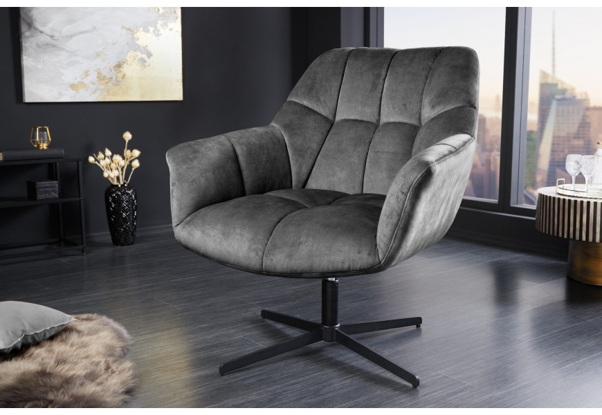 Dizajnové otočné výškovo nastaviteľné kreslo Mariposa v sivej farbe s čalúneným poťahom 89 cm