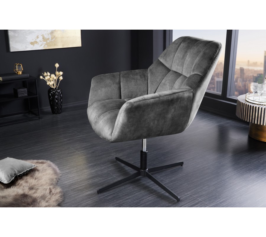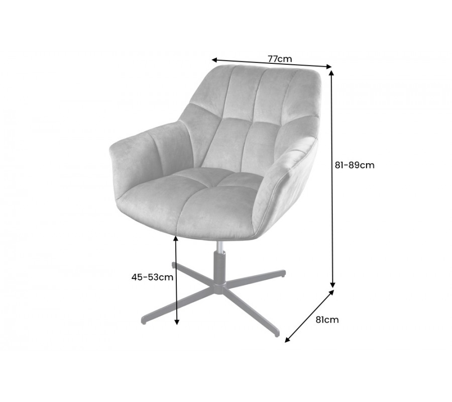 Kreslo ponúka otočnú funkciu a možnosť nastavenia výšky sedáku, čo umožňuje individuálnu prispôsobiteľnosť podľa potrieb používateľa a komfortné sedenie počas celého pracovného dňa. Čalúnený zamatový poťah dodáva kreslu eleganciu a teplo, zatiaľ čo moderný dizajn zaručuje, že sa stane štýlovým prvkom vášho pracovného priestoru.