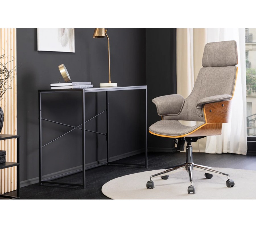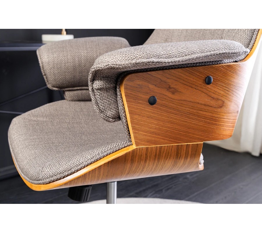 Moderná kancelárska stolička Madison so sivým poťahom a orechovým hnedým drevom s výškovo nastaviteľnou otočnou nohou 68 cm
