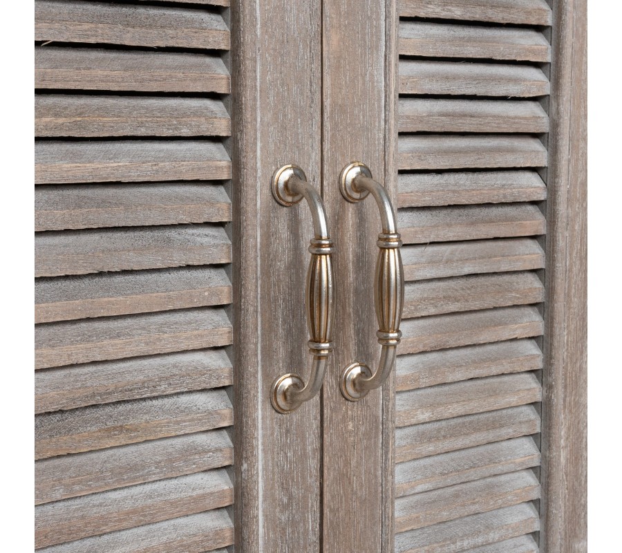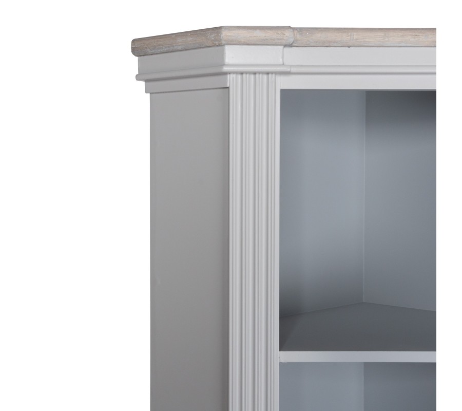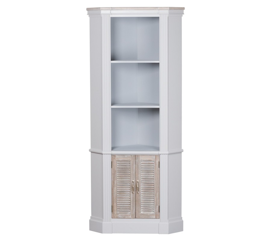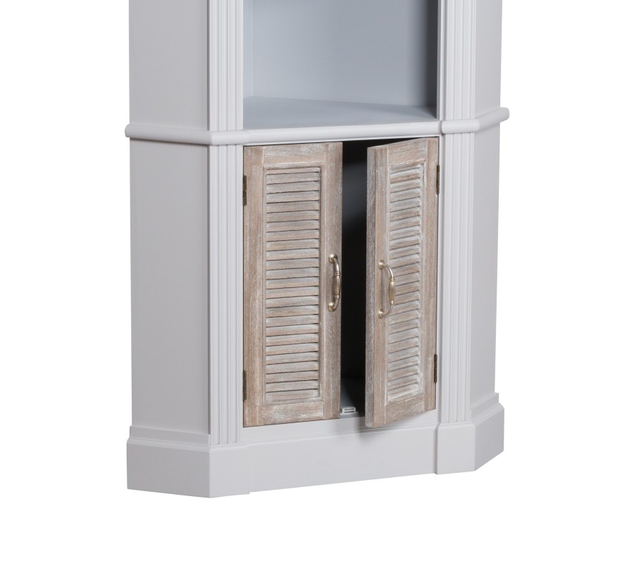 Dizajnová biela rohová knižnica z kolekcie nábytku Liberty zaujme svojmi prepracovanými detailmi a netradičným spracovaním. Dizajnová textúra obrúsenej bielej spolu s prírodne spracovanými dvierkami dodáva knihovni vzhľad francúzskeho vidieka z oblasti Provence. Masivná knihovňa je jasnou voľbou do dizajnových interiérov zariadených v nesmrteľnom provensálskom štýle. Zlaté rúčky na dvierkach ako aj samotné dvierka a telo knihovne Vás pri každom pohľade očaria svojimi dôkladným prepracovaním.