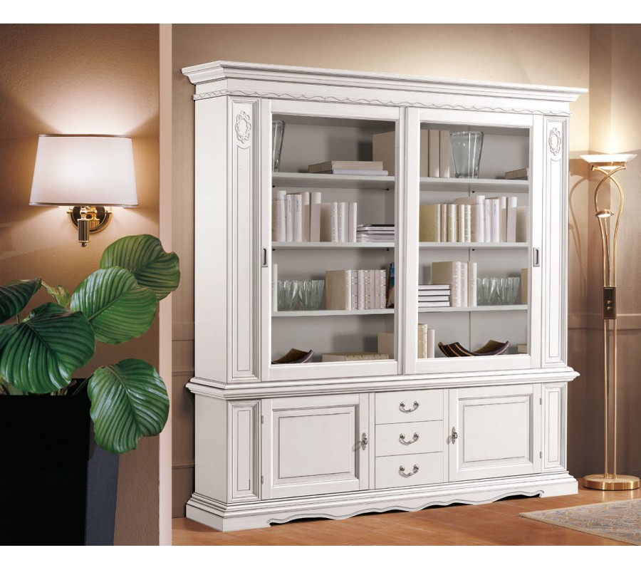 Luxusná rustikálna talianska dvojdverová vitrína v bielej farbe s vyrezávaným zdobením 220 cm