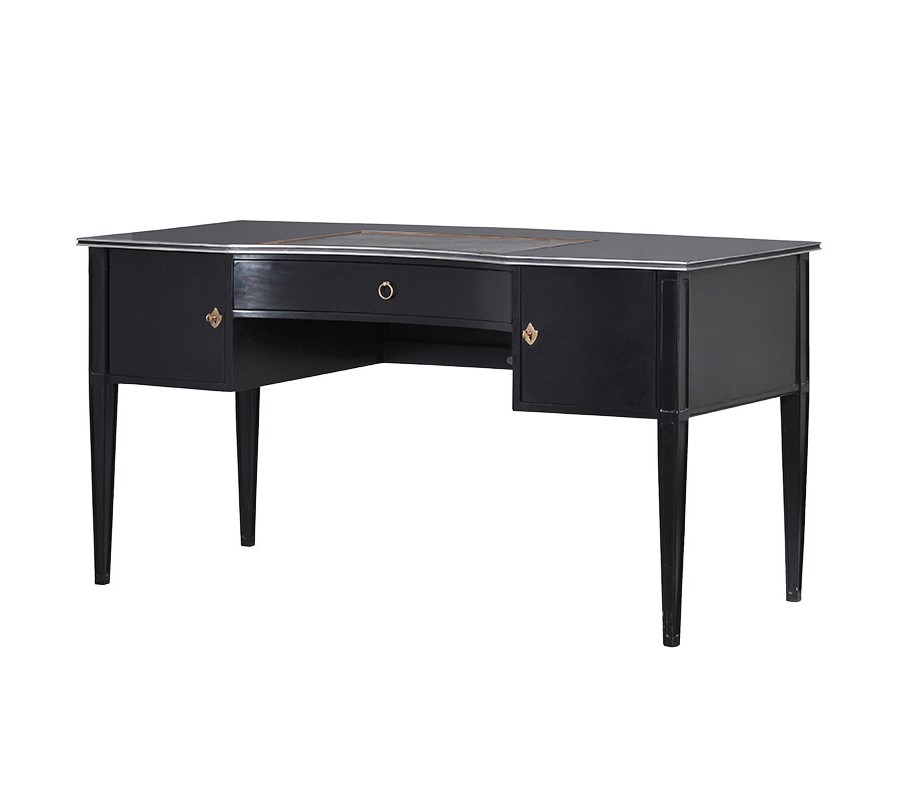 Rustikálny luxusný pracovný stôl Wielton Nero je obdĺžnikového tvaru. Má štyri nožičky, dve dvierka a jednu zásuvku, ktoré fungujú ako odkladací priestor. Vyrobený je z dreveného masívu v čiernej farbe. Veľkou výhodou je podložka z kože, ktorá je protišmyková, jemná na položenie ruky alebo vhodná na umiestnenie klávesnice. Dokonalo sa hodí do rustikálne zariadených interiérov.