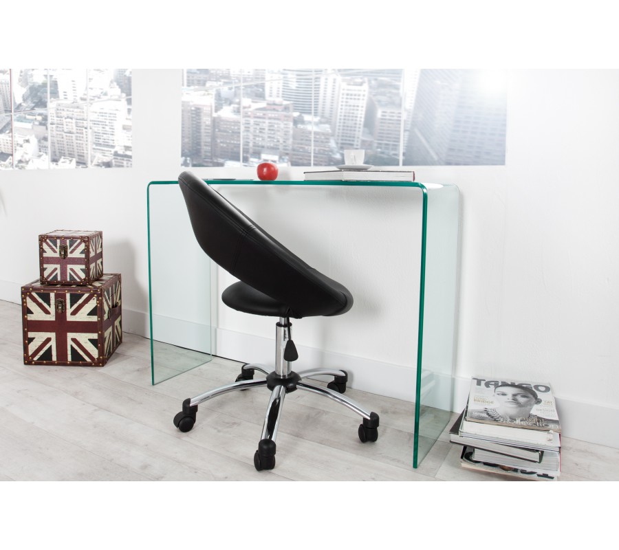 Moderný sklenený obdĺžnikový priehľadný písací stôl Ghost so zaoblenými rohmi 100 cm