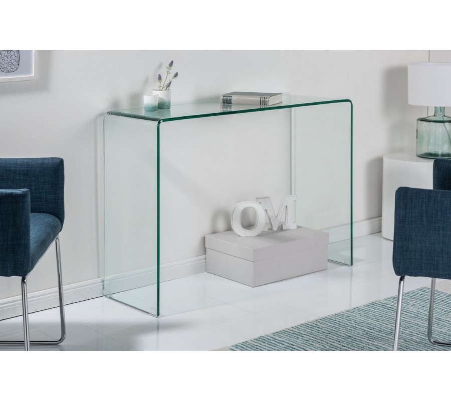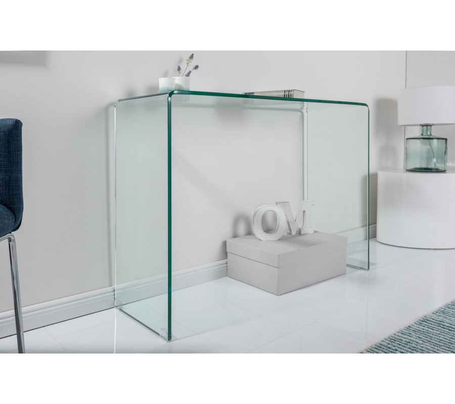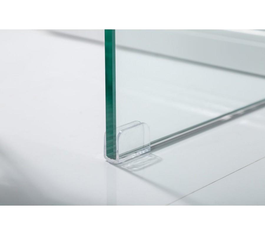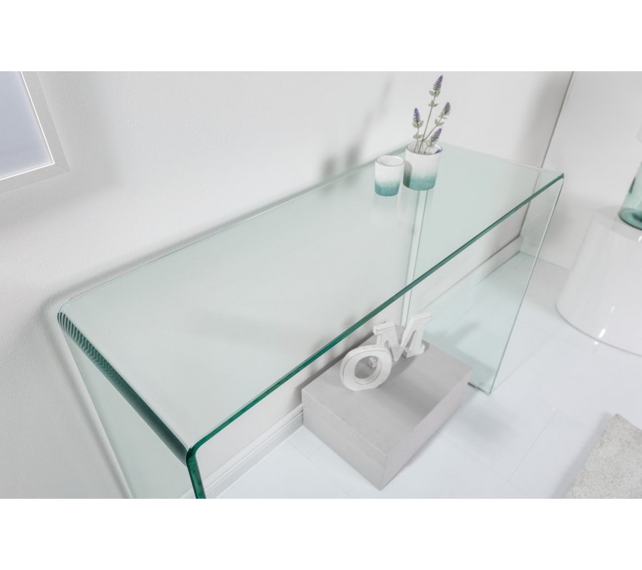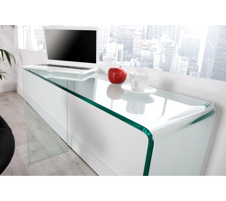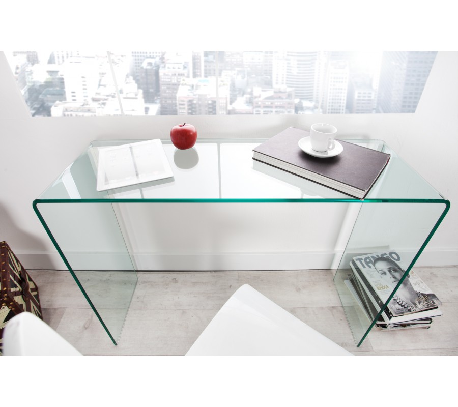 Moderný sklenený písací stôl Ghost v obdĺžnikovom tvare s elegantne zaoblenými rohmi je vyrobený z jedného kusu kvalitného bezpečnostného tvrdeného skla s vysokou nosnosťou a odolnosťou proti nárazom. Jeho hladký a priehľadný povrch pôsobí mimoriadne vzdušne a opticky nezaťažuje priestor, vďaka čomu je ideálnou voľbou aj do menších miestností. Minimalistická silueta bez rámu alebo dodatočných prvkov vytvára čistý a moderný vzhľad, ktorý sa hodí do každého interiéru so svetlým alebo luxusným nádychom.