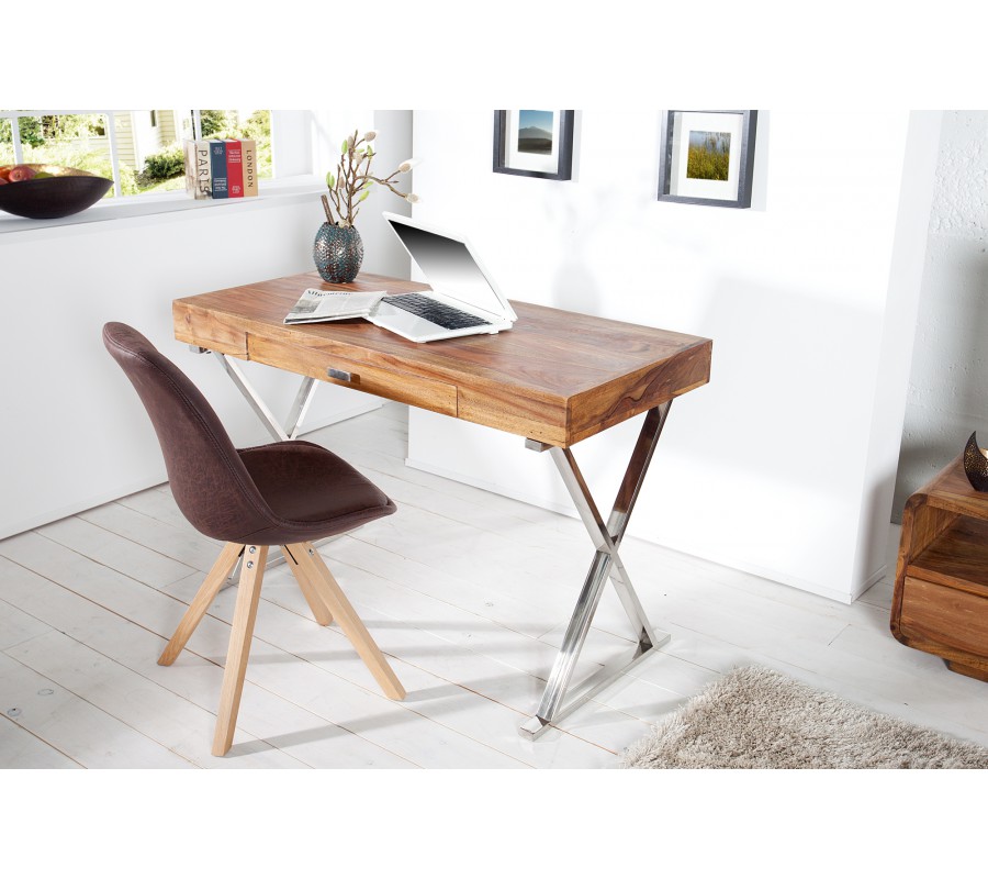 Štýlový moderný pracovný stôl Grace vyrobený z masívneho dreva je krásnym kúskom do moderne zariadených pracovní či obyvacích miestností. Kovové chromované nohy dodávajú stolu elegantný vzhľad. Rozmery: 120cm x 75cm x 55cm (ŠxVxH) Zásuvky: 65cm x 5cm x 35cm.